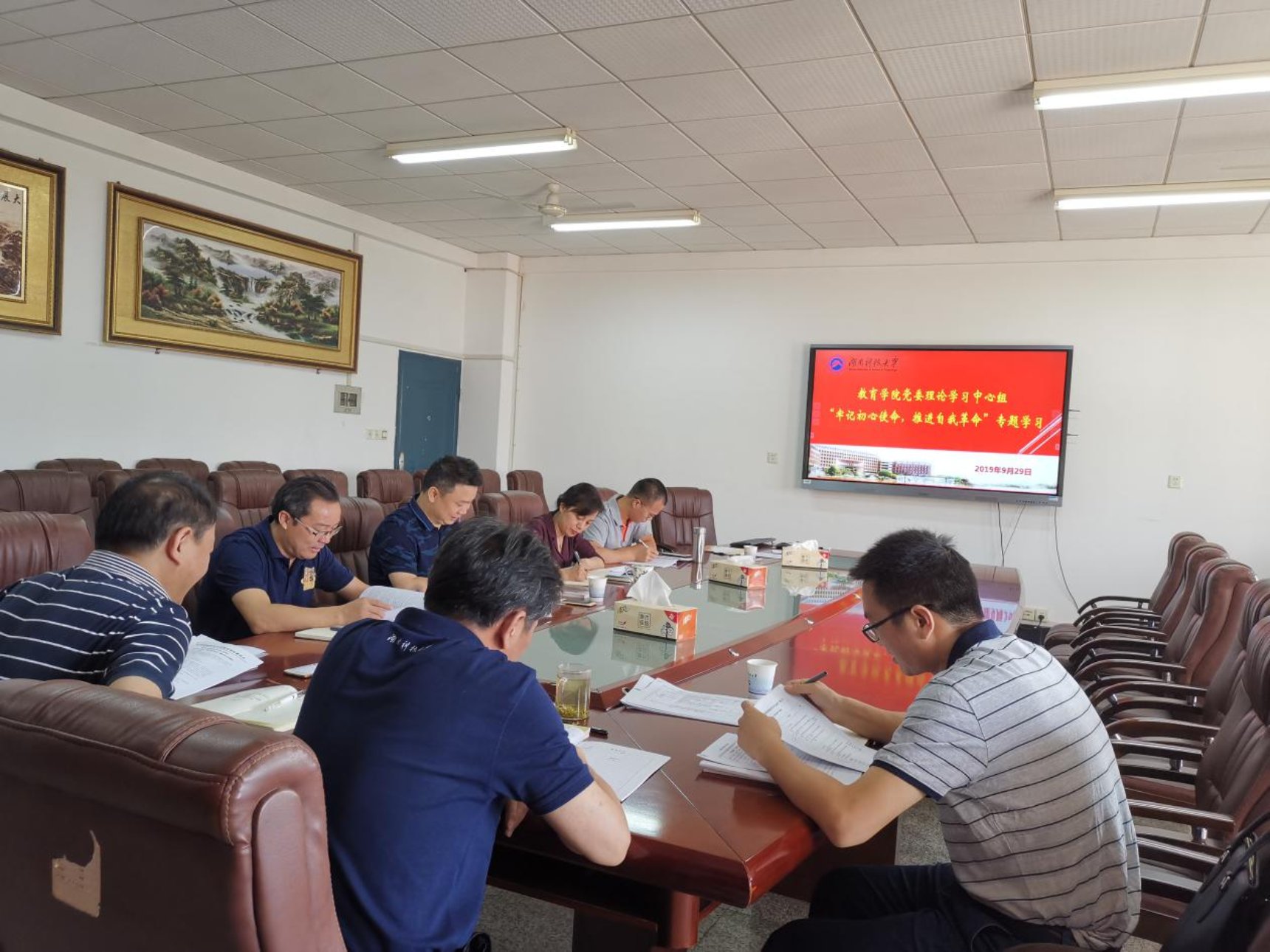 2019年9月29日,院党委理论学习中心组在第八教学楼208会议室开展“牢记初心使命,推动自我革命”主题学习。