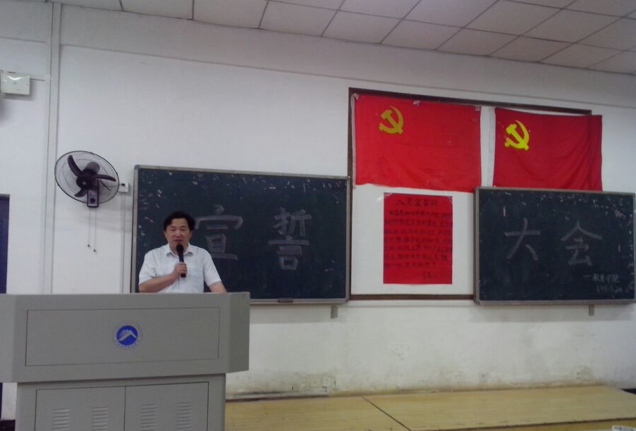 2015年5月24日15:00教育学院新发展党员宣誓大会在第八教学楼1-3教室召开。教育学院党委副书记兼分党校校长王伟清同志,教育学院本科生支部书记胡银华同志,党建工作委员会副书记严凤云同志以及学院全体党员出席了本次大会,大会由胡银华同志主持。