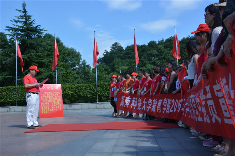 “世界是你们的,也是我们的,但是归根结底是你们的。你们青年人朝气蓬勃,正在兴旺时期,好像早晨八九点钟的太阳。希望寄托在你们身上。”正如毛主席所言,新时代的青年正如朝阳在冉冉上升,湖南太阳成集团tyc122cc入口又加入一批优秀的新发展党员。2016年6月22日上午9点,本次新发展党员宣誓大会于韶山毛主席铜像前隆重举行。教育学院党委副书记兼分党校校长王伟清同志、学生党支部结对共建单位校财务处许玉萍老师、杨青老师、蒋晓雪老师、学工办胡银华同志出席了本次大会,胡银华同志主持了本次大会。