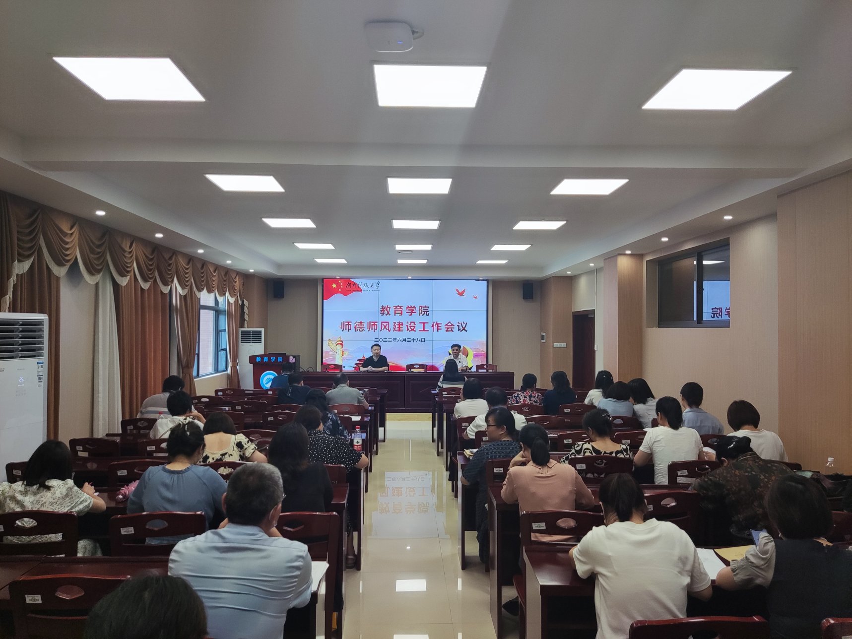 2023年6月28日下午,教育学院在敏行楼A333召开师德师风建设工作会议,全体教职工参加。会议由党委书记李炳煌主持。