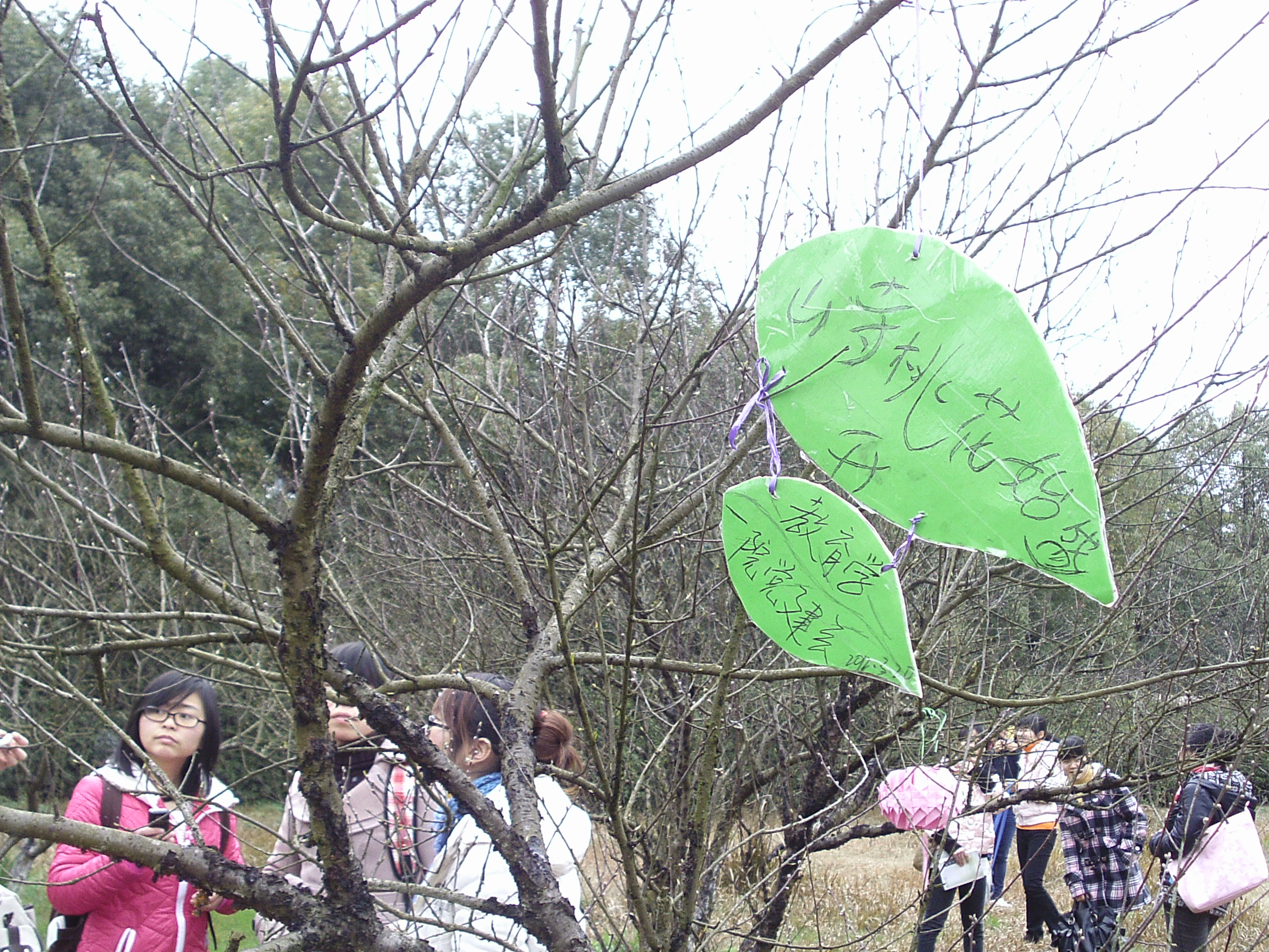 含苞待放的桃花,精美的标签,各小组的互评赏花标签的欢声笑语,桃花园里格外的生机盎然。小小的标签随着微风轻轻摆动,似乎在含笑说着谢谢。“咔嚓,咔嚓”相机把每一个美丽的景色和大家满意的微笑记录了下来。