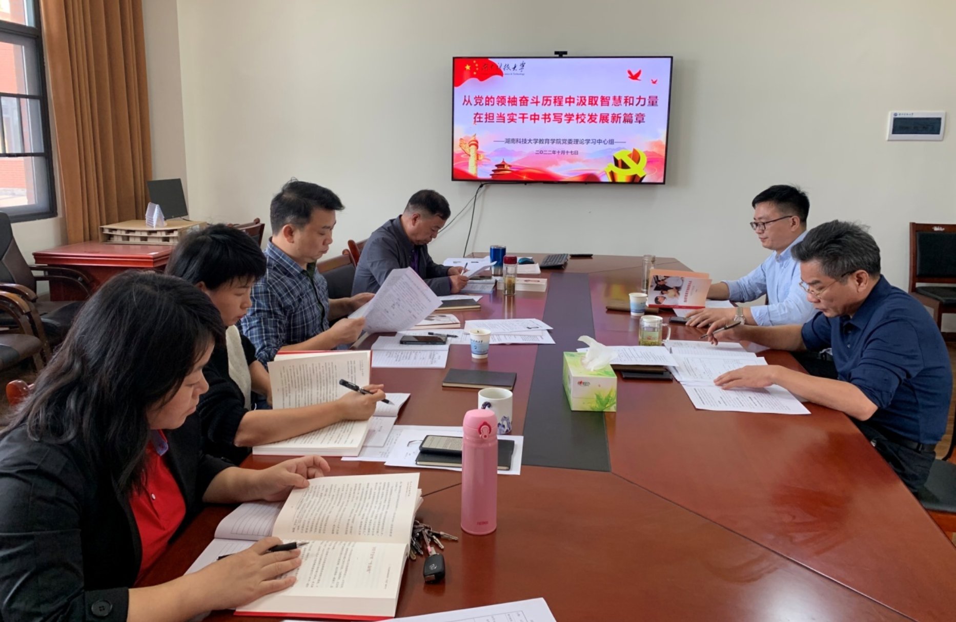 10月17日下午,教育学院党委理论学习中心组在敏行楼B301会议室举行“从党的领袖奋斗历程中汲取智慧和力量 在担当实干中书写学校发展新篇章”专题集中学习。院党委书记李炳煌主持。