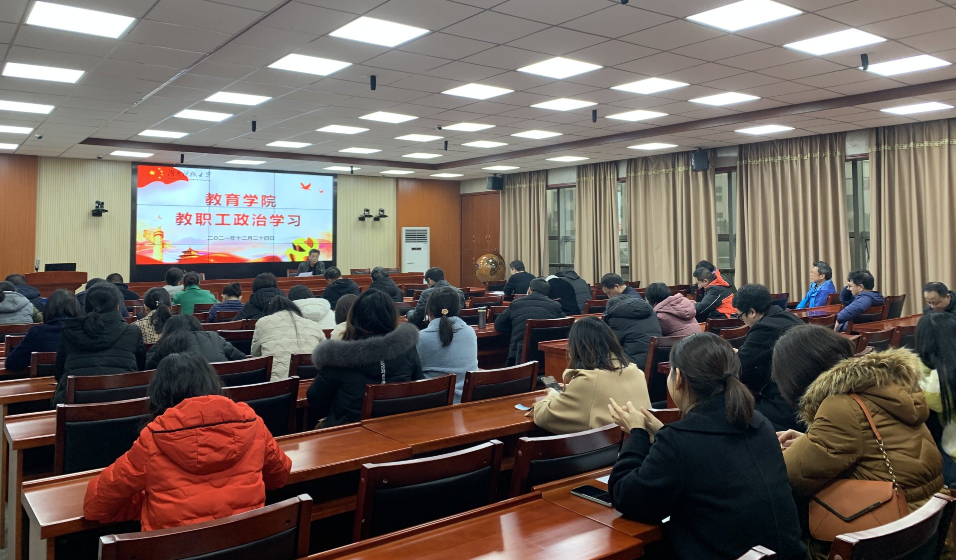 您所在的位置: 首页» 党建工作» 理论学习 教育学院组织开展教职工政治学习 时间:2021-12-25 10:45:00 12月24日下午,教育学院在八教308会议室组织全院教职工政治学习。本次学习主题为向先进典型学习。院党委书记李炳煌主持学习。 与会人员认真学习习近平总书记在“七一勋章”颁授仪式上的讲话、《中共湖南科技大学委员会关于开展向“海牛”团队学习活动的决定》。李炳煌强调,全体教师要积极行动起来,以先进典型为榜样,为服务国家重大战略需求和湖南“三高四新”战略,推动学校高质量发展作贡献。