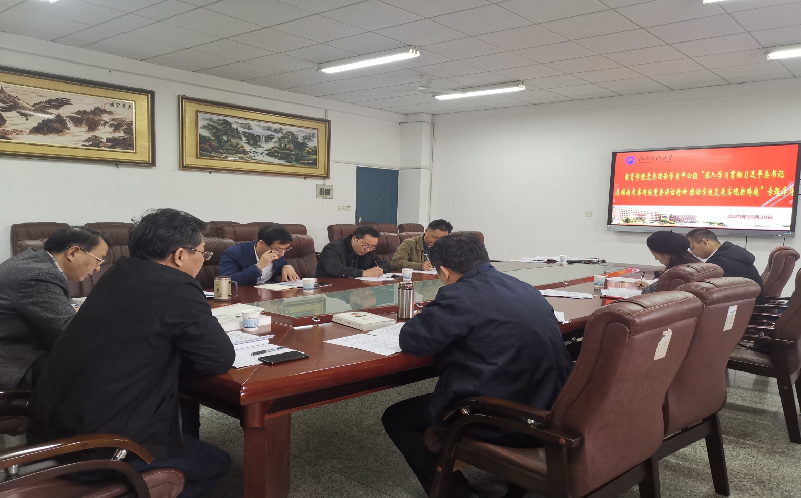 2020年10月20日,学院党委理论学习中心组在8教208室开展“深入学习贯彻习近平总书记在湖南考察时的重要讲话精神 推动学校发展实现新跨越”专题学习。会议由院党委书记李炳煌主持,学校学工部部长尹风雨巡听督导。
