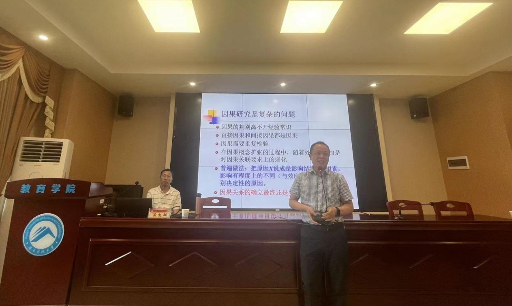 6月8日上午,华南师范大学教授、计量心理学博士生导师,《心理学报》和《心理科学进展》编委温忠麟教授做客“明湖教育论坛”,在敏行楼A333报告厅为我院师生带来题为“实证研究中的因果推理与分析”的学术讲座。讲座由教育学院院长谭千保主持,教育学院教师代表,研究生、本科生到场聆听。
