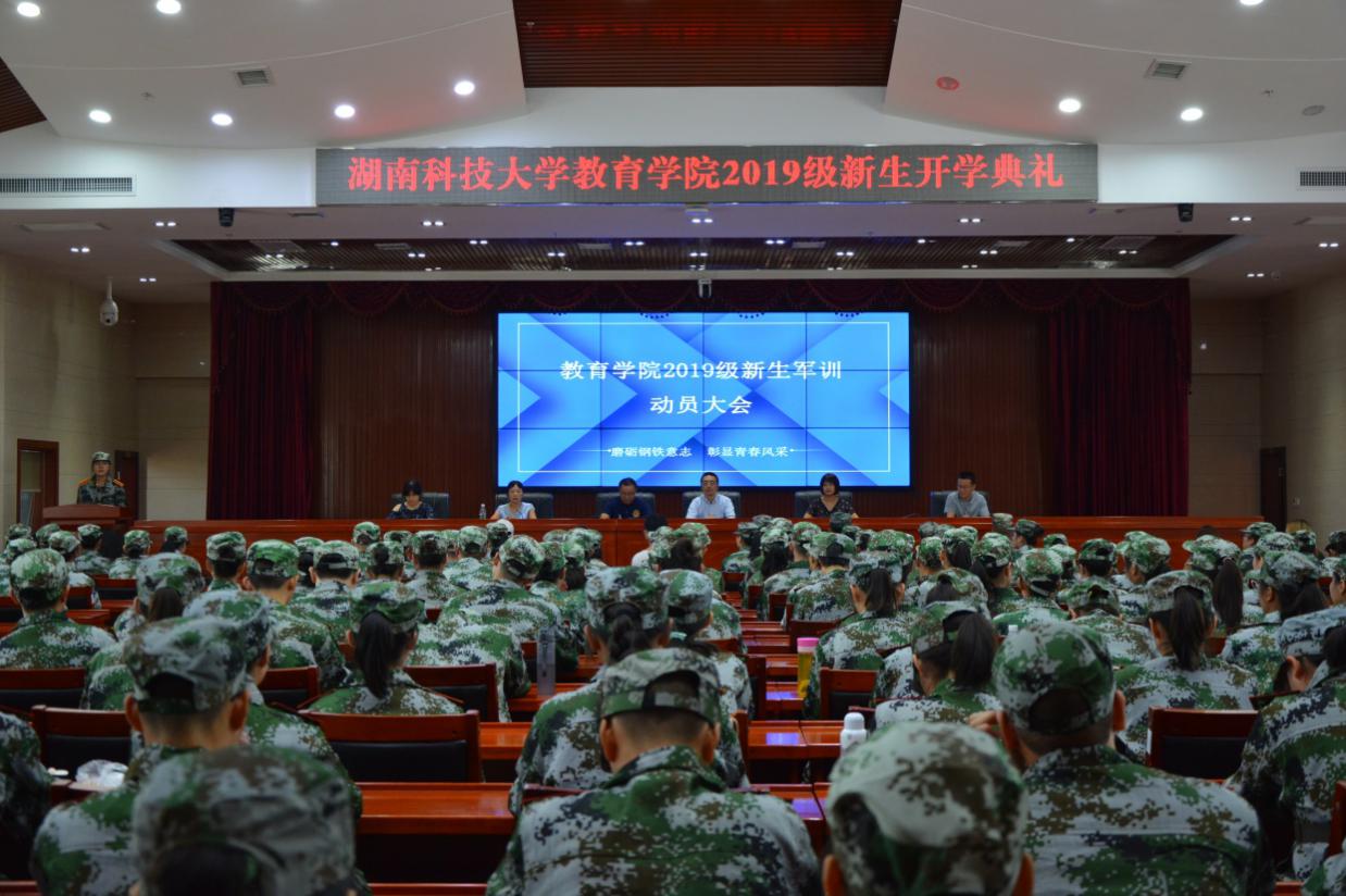 2019年9月8日上午10:00,教育学院19级军训动员大会于在立德楼五楼会议室隆重举行。出席本次会议的嘉宾有教育学院党委副书记刘辉亚、19级辅导员尹琼芳、团委书记练素华、学工办主任李涛、以及辅导员胡银华和刘斌。全体19级新生及班级助班参与本次会议。大会由团委第一副书记张苗主持。