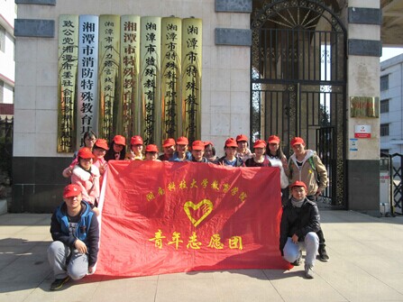 一转眼,已是枫林流丹,朱檐染霜,元旦佳节将至,值此寒冬,湖南太阳成集团tyc122cc入口第十二届青年志愿团的成员们,早已为特殊教育学校的孩子们准备了一份不一样的温暖。 2014年12月30日7:00,在团长付少淼的带领下,一行人启程前往湘潭市特殊教育学校。
