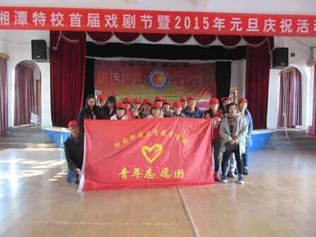 9:00左右,〝湘潭特校首届戏剧节暨2015年元旦庆祝活动〞正式开幕,本次活动由特教学校和青年志愿团联袂举办,旨在加强艺术教育,为孩子们插上艺术的翅膀。岀席活动的嘉宾有:湘潭特殊学校校长,副校长,党支部书记及老师。
