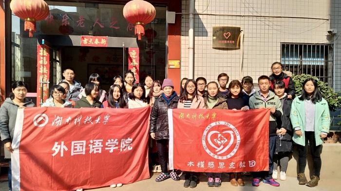 ?12月10日上午,木槿感恩支教团联合外国语学院青年志愿团共同走进湘潭市快乐老年之家,27名志愿者齐力包饺子,与老人唠家常,为老人送上冬日的温暖与关怀。