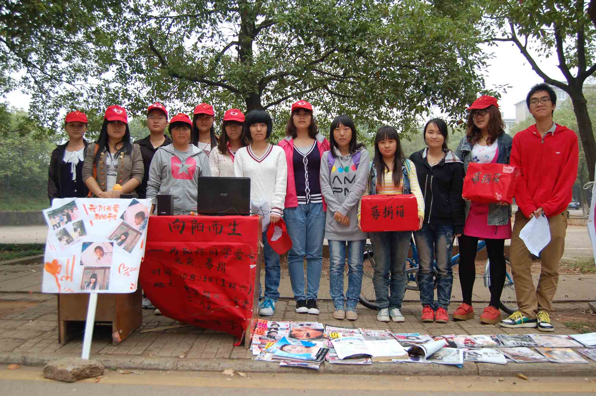 “谢谢您的爱心捐助,祝您一生平安!”教育学院12级教育学专业的志愿者们感激地说到。10月13日,从早上9点开始为期一天的为我院11级学生阳琼爱心义卖筹集善款的活动于电信路口、二食堂、七区、八区分别积极展开。