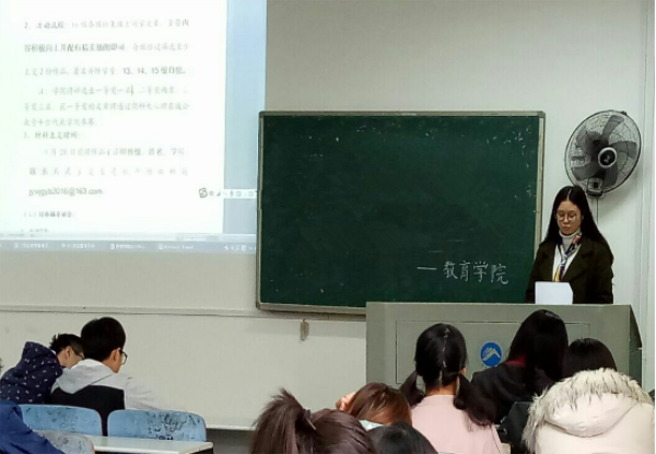 本次教育学院心理健康月内容包括,心理情景剧大赛、微信文章征集、心理健康团体辅导班会、观看心理健康电影和部门的摆点活动。最后,危机干预部副部朱彦桦用生动的PPT文件为16级危机信息员和班长,讲述了团体辅导班会可以采取的形式,活动内容。会议结束后,各班同学安静地离开教室。大会过程中,各班同学相当认真听讲,并记录下有关心理健康月活动的重点。希望心理健康月能取得圆满成功,学院每位同学能以积极乐观的心理面对现在以及以后的生活!