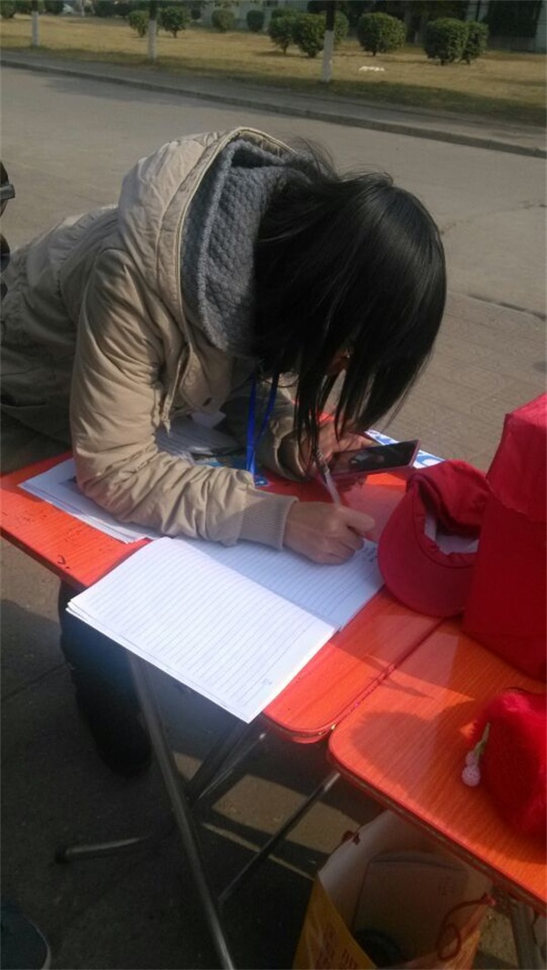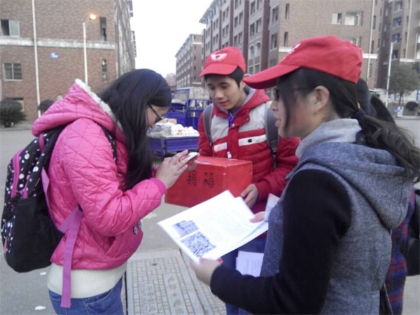 12月21日晚19:30,在三名组长的带领下,五十多名志愿者分别去五区、七区、八区学生宿舍进行旧图书的收集。中外名著、英语散文、历史地理杂志……文学、科学、历史、地理等种类应有尽有,同学们“慷慨解书”,初步统计数量在一千左右,在运书的时候有个三轮车不堪重负爆胎了。“这是我一直珍藏的豪放词,希望它能带给孩子们知识和欢笑,并把爱心传递下去。”五区二栋某宿舍高锐如是说。22日、23日,在南校美食广场、七区女生宿舍前、第二食堂门前四个募捐点展开了募捐活动。活动包括图书捐赠、资金捐赠以及扫二维码募集资金三个形式。暖暖的阳光照在志愿者头顶的小红帽和手捧的募捐箱上,不少人驻足关注活动内容并选择不同方式献出自己的一份力量。
