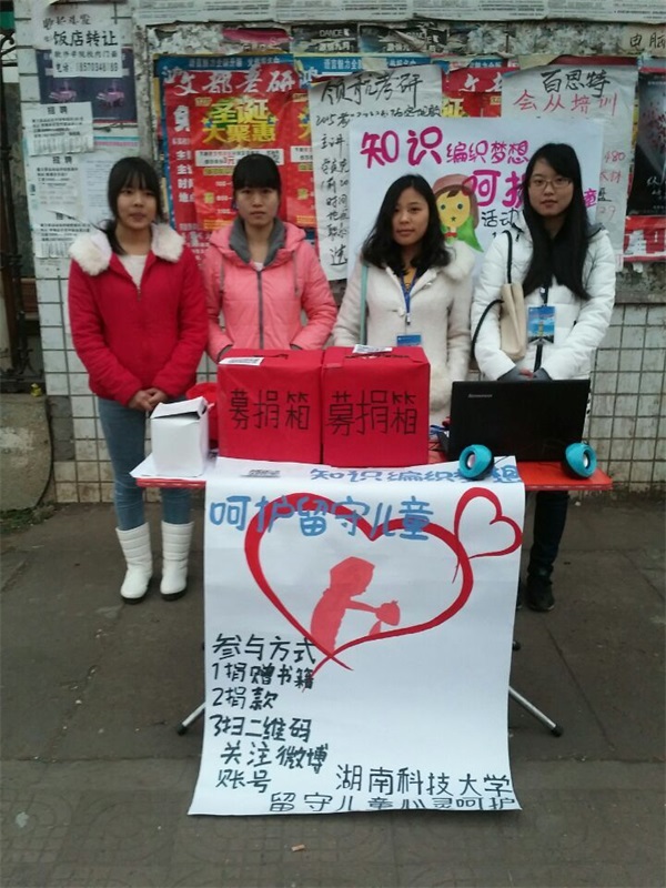 为了帮助娄底塘湾中学建立起一个图书室,给432名孩子送去精神食粮,在金山毒霸校园的友情赞助下,湖南科技大学青少年儿童心灵呵护志愿团在12月21日至23日期间开展了包括图书收集、资金募捐两个模块的志愿活动。