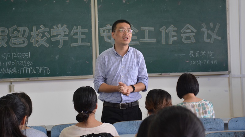 2017年7月5日下午2:30,教育学院暑假留校学生安全工作会议在八教3-2教室举行,本次会议的主要目的是:有序开展危机干预工作,提高暑假留校生的安全防范意识,培养其在细节处发现危机信息的能力。参加本次会议的有:教育学院党委副书记、学工办辅导员、学生干部以及全体留校学生。