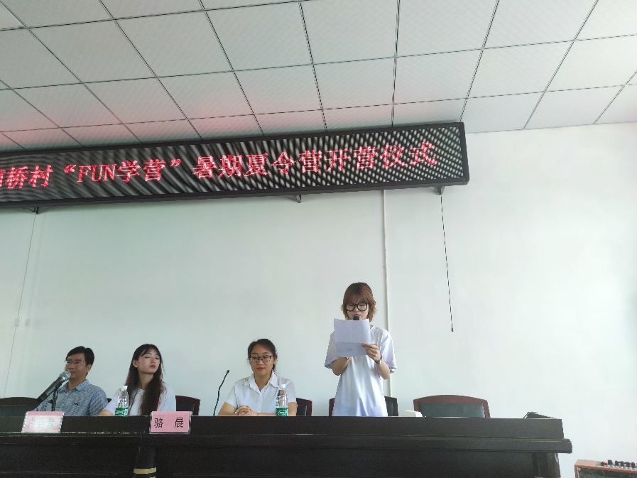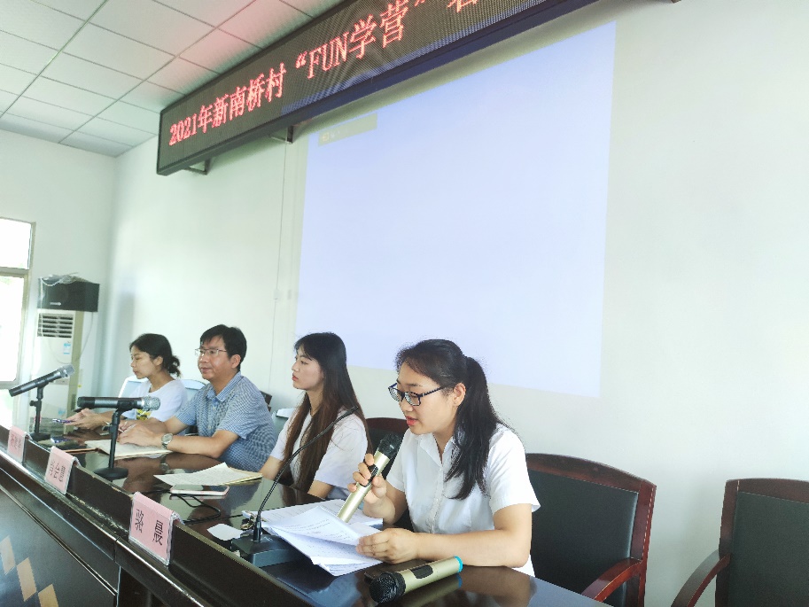 会议伊始,新南桥村支委委员骆晨简要介绍“Fun学营”的基本情况并对全体学生以及家长的积极加入表示热烈欢迎。骆晨说明了新南桥村“Fun学营”成立于2016年,其宗旨在于激发青少年学习兴趣,培养孩子们的自信。让孩子们在快乐中学习,在学习中游戏,在游戏中进步,度过一个开心安全的暑假。