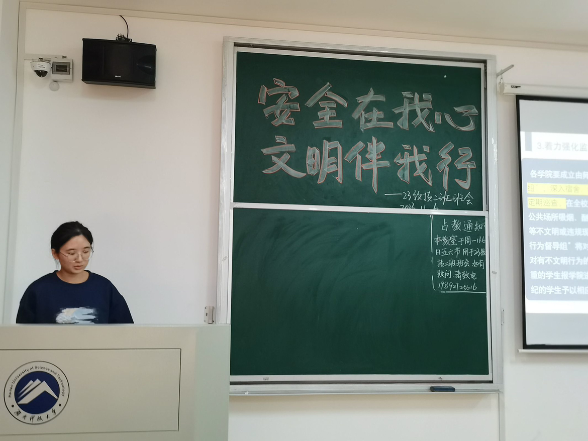 为了提高学生安全意识,继续巩固和加强大学生素质文明养成教育,11月5日至11月10日,教育学院组织本科生各班级在敏行楼开展“安全在我心,文明伴我行”主题班会,各班主任参加。