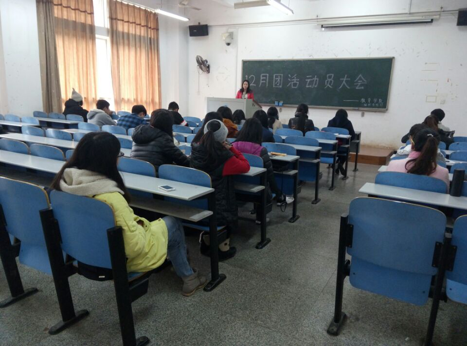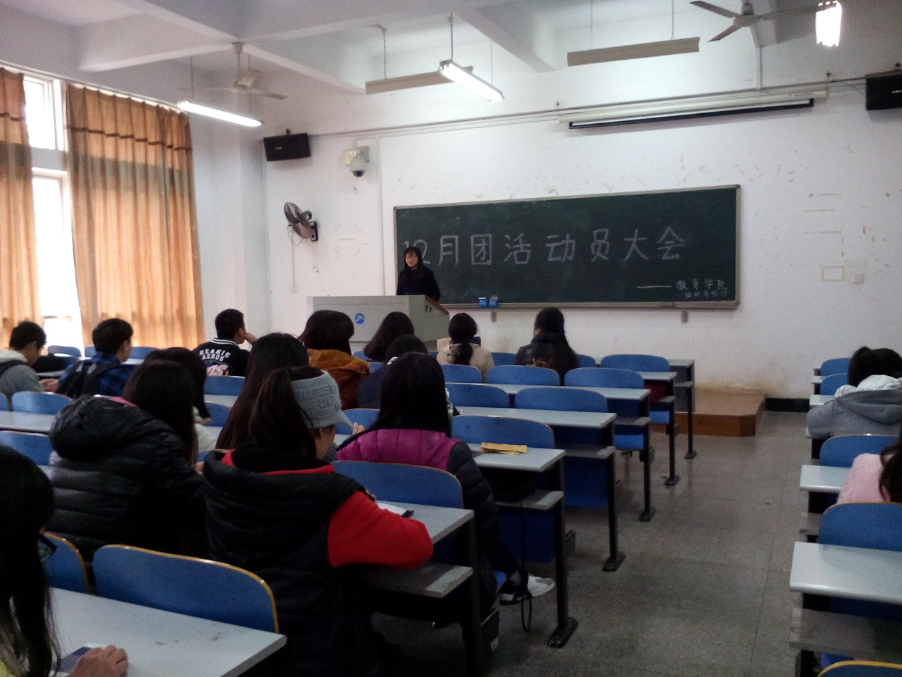 2015年12月3日星期四,教育学院组织考核部组织了13级、14级、15级三个年级的班级团支书在八教105开了十二月份团活动员大会。