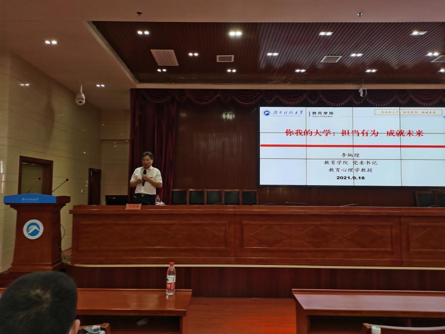 开学典礼结束后,由院党委书记李炳煌教授为2021级新生讲授以“ 你我的大学:担当有为,成就未来 ”为主题的入学教育第一课。