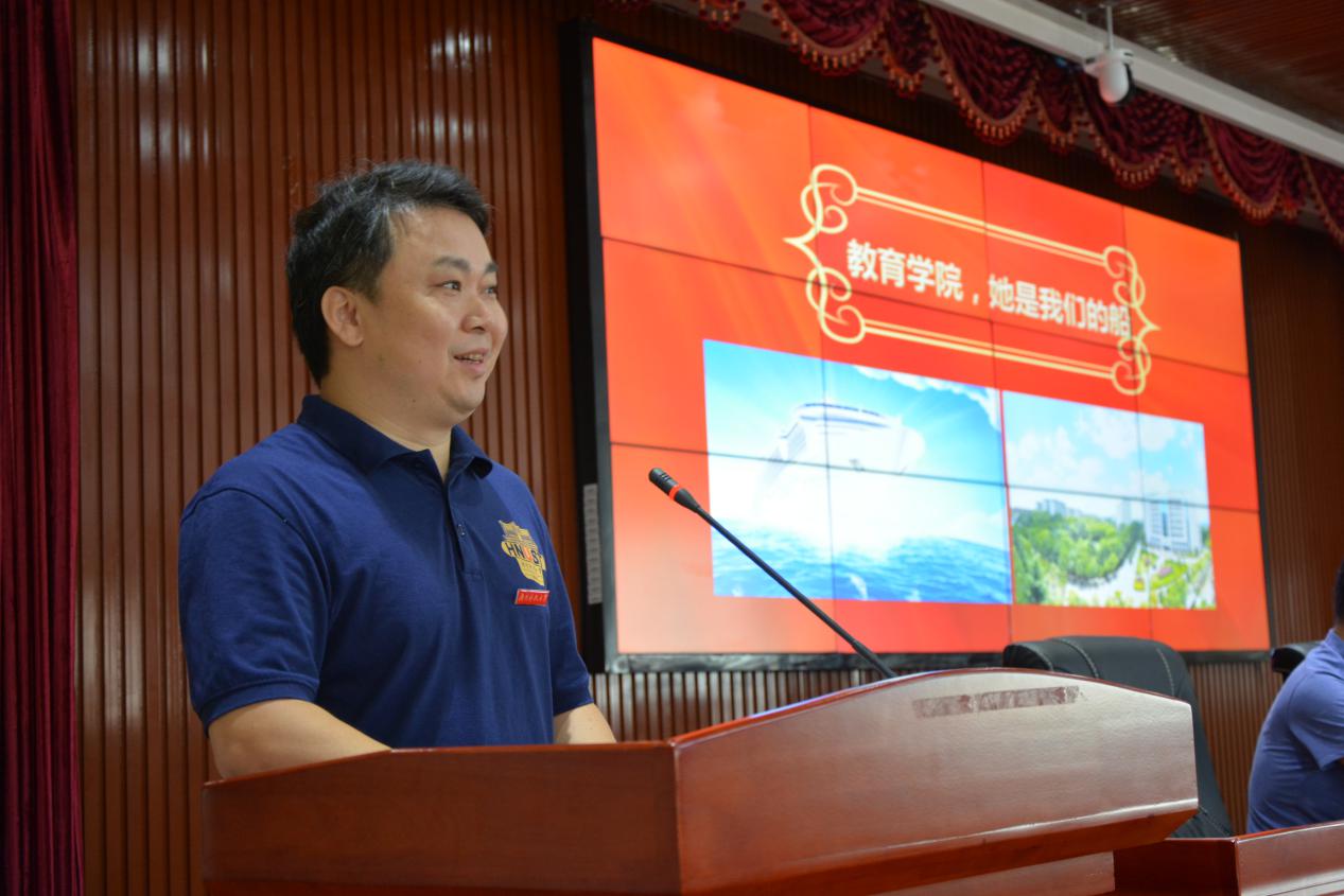 教师代表谭千保教授形象地将教育学院比作一艘奋进的大船 ,将学生比作船员,将领导老师比作舵手,表达了对教育学院发展越来越好的美好希冀。他建议全体新生:既然是自己的船,自己就要努力打造;自我挑战,向懒惰开炮,争做有力量的船员;付出最激情的行动,让船跑得更快些。他激励大家既然已经选择了教育学院这艘船,就务必与它同荣辱、共命运,因为这也是你的船,我们要与她同舟共济,共创辉煌。在发言过程中,新生们积极回应,台下不时响起热烈的掌声。