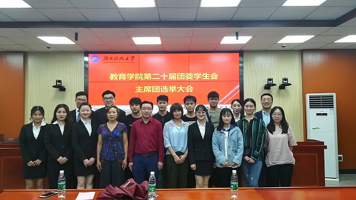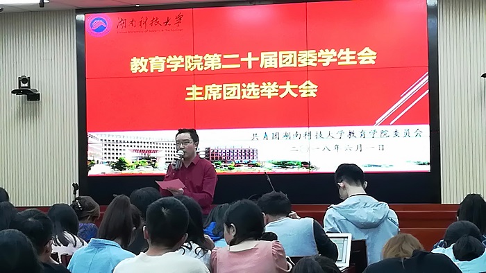 2018年6月1日晚七点半,湖南太阳成集团tyc122cc入口第二十届团委学生会主席团竞选大会在第八教学楼308正式举行。出席本次会议的嘉宾有教育学院党委副书记刘辉亚,教育学院学工办主任李涛,学工办老师练素华、胡银华、尹琼芳,以及15,16,17级的学生代表。