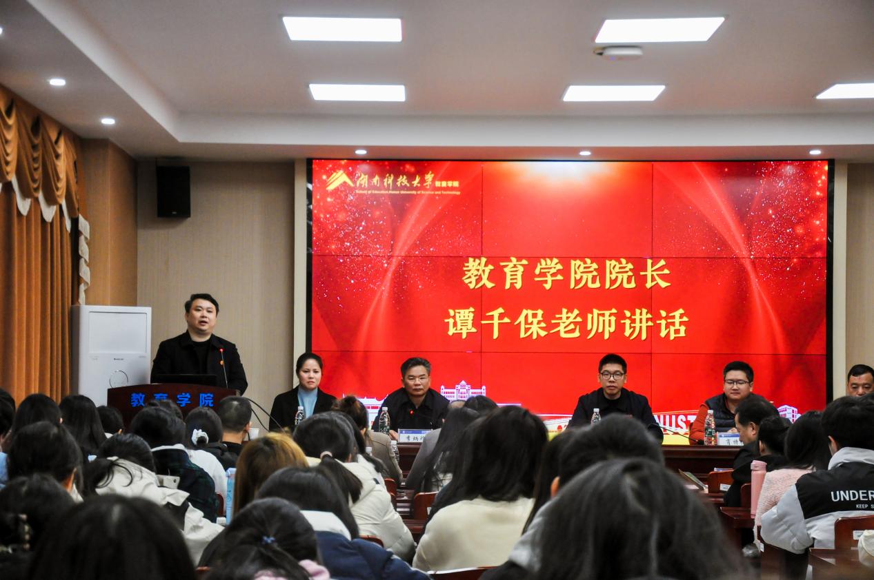 教育学院院长谭千保代表学院感谢各位校友的鼎力支持。他指出,“敏行育人基金”与“特强奖学金”是在校生、校友、学院共同成长的承载点,也是优秀校友情系母院、回馈母院的典范,具有重要的榜样示范作用。