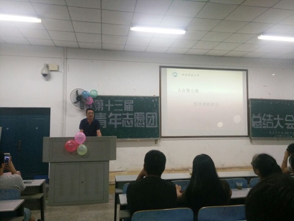 2016年 6月28日19:30,湖南太阳成集团tyc122cc入口第十三届青年志愿团总结大会在第八教学楼2-3举行,旨在带领大家一起回顾这一年志愿路上的点点滴滴。莅临本次大会的嘉宾有学工办主任李涛老师,学生会主要负责人贺婧、兰心宇、范乐佳,学生会副主席甘露、郝显露,校、兄弟志愿团的负责人以及第十三届团干和志愿团的所有成员们。