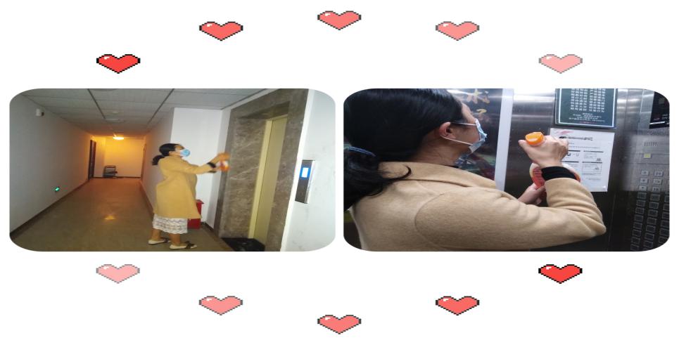 图二:张展,教育学院2019级教育管理专业研究生,在重庆九龙坡参加楼层消毒工作。