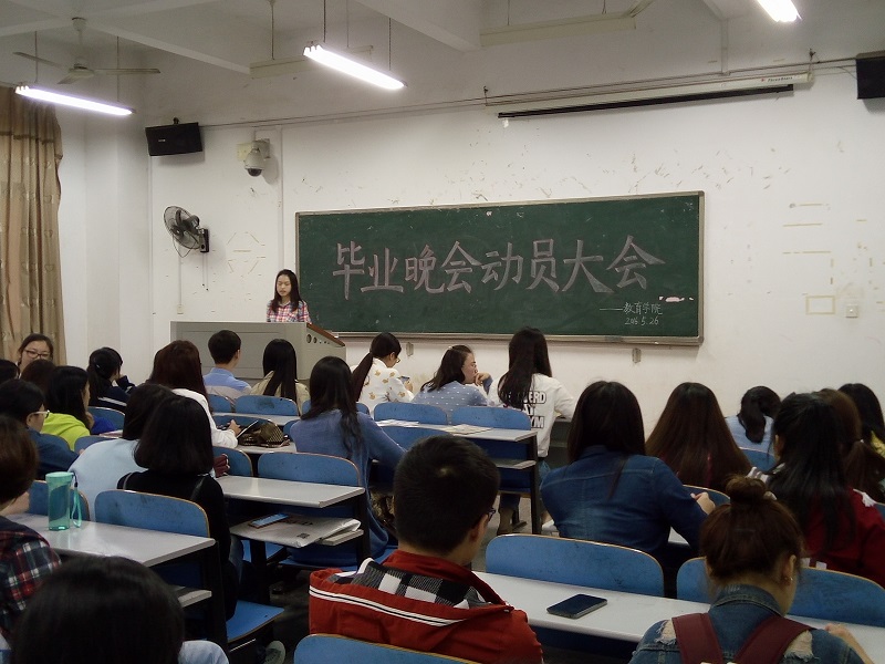 2016年5月26日18时10分,最好的时光,最美的我们——教育学院2016年毕业晚会动员大会于第八教学楼105教室举行,与会人员包括教育学院团委学生会主席团成员以及各部门主要干部,会议对教育学院2016年毕业晚会期间各项工作进行了统一布置。