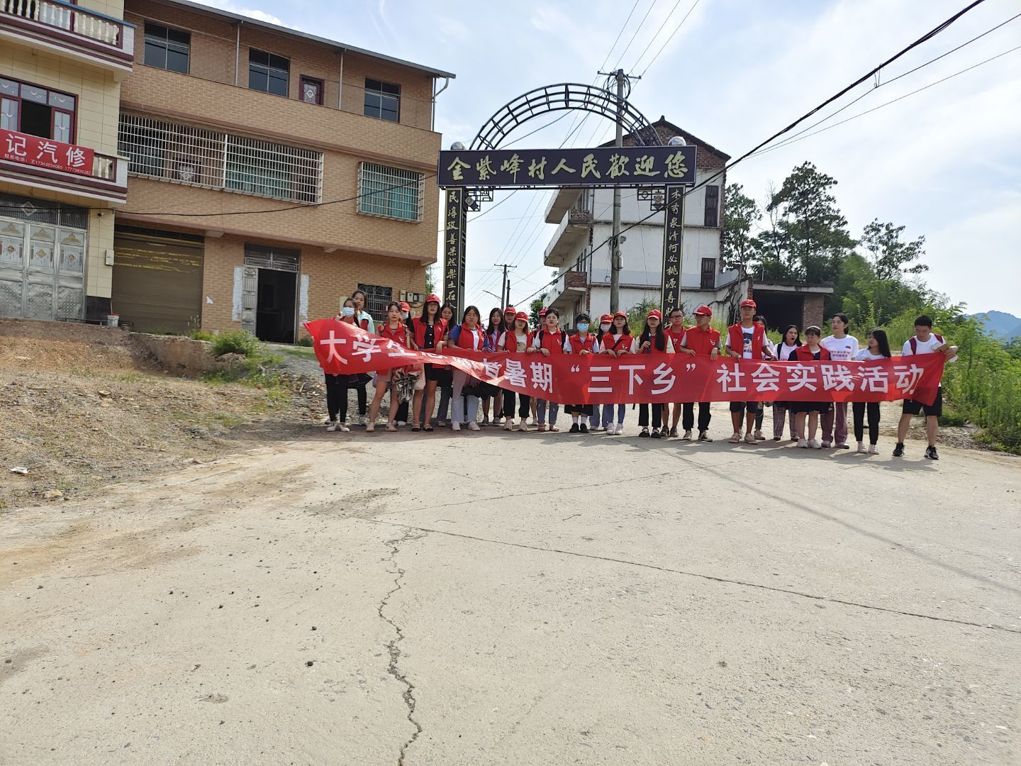 (志愿者们集体在金紫峰村前合影)