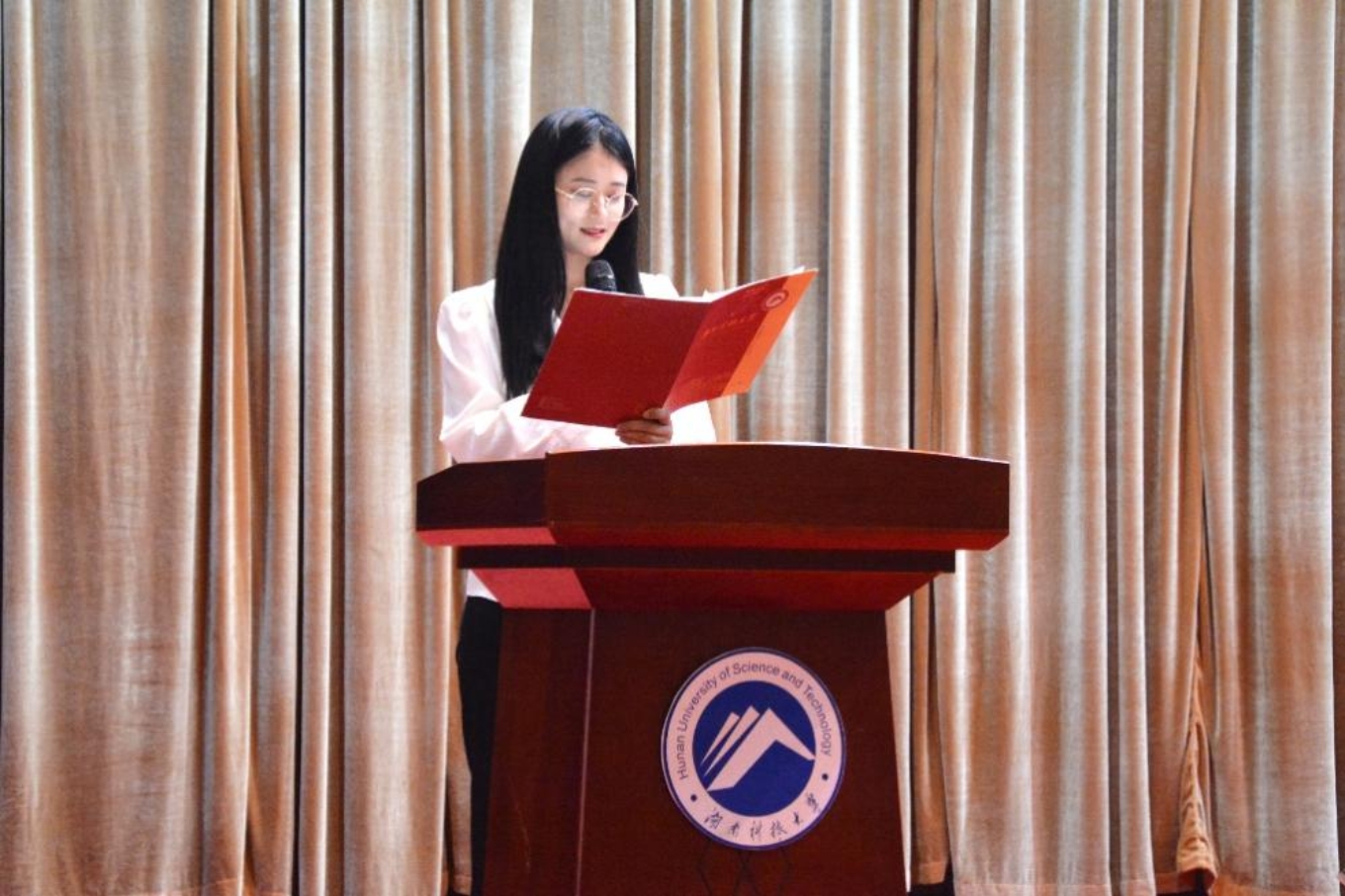 大会第一项,全体起立奏唱国歌。随后进入表彰环节,我院第二十三届学生分会执行主席杨淑雯宣读先进个人、优秀班集体、儿童文学表演赛、讲课比赛获奖名单,院领导为获奖者颁奖。