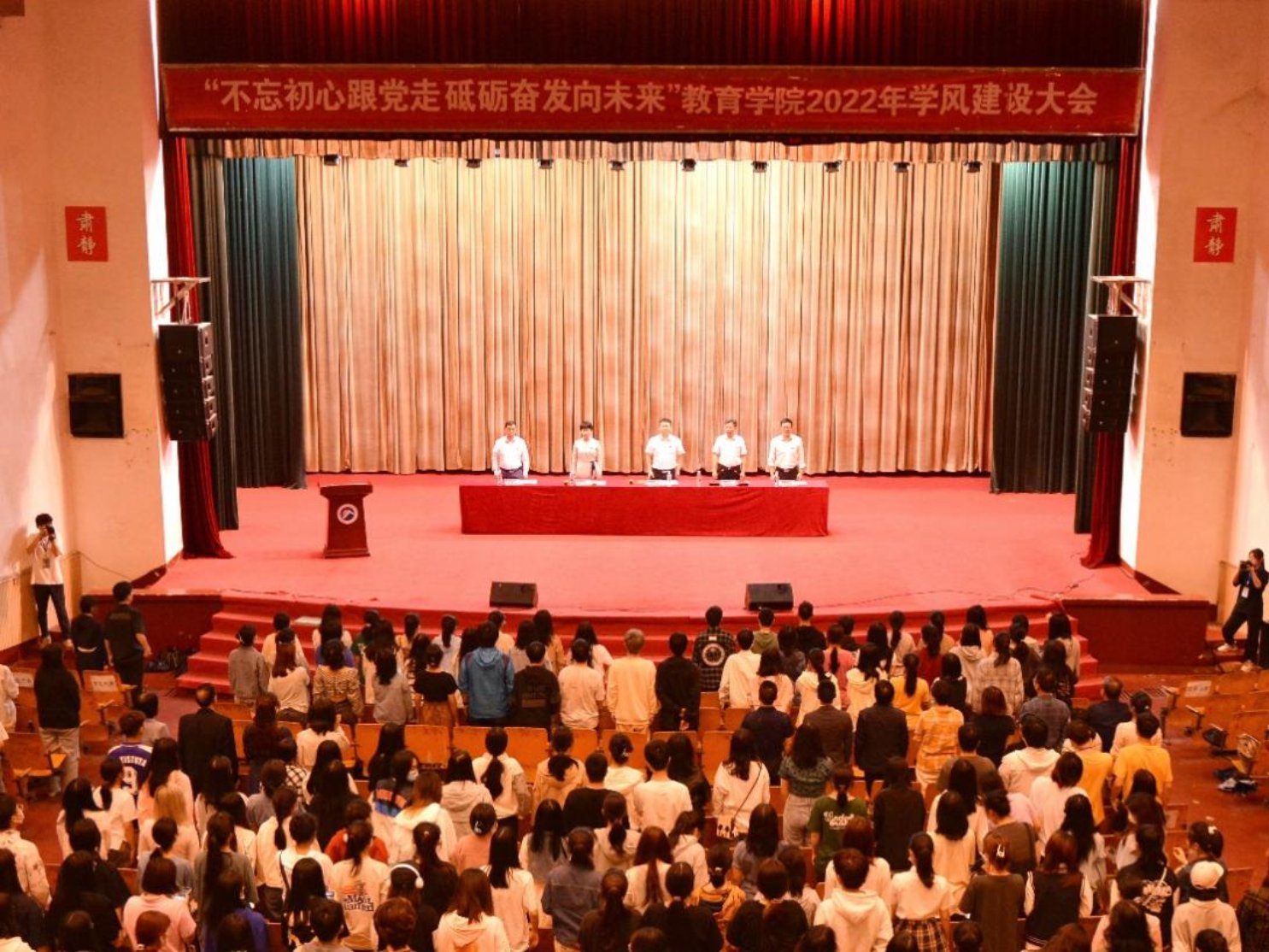 为进一步加强我院学风建设,落实立德树人根本任务,充分发挥榜样示范引领作用,推进建立学风建设长效机制,5月27日晚19:30,教育学院(教育科学研究院)2022年学风建设大会在南校俱乐部隆重召开。院长谭千保、党委书记李炳煌、党委副书记刘婕、副院长陈京军、张进良出席本次会议,各系主任、班主任、部分教师以及全体学生参加,大会由院党委书记李炳煌主持。