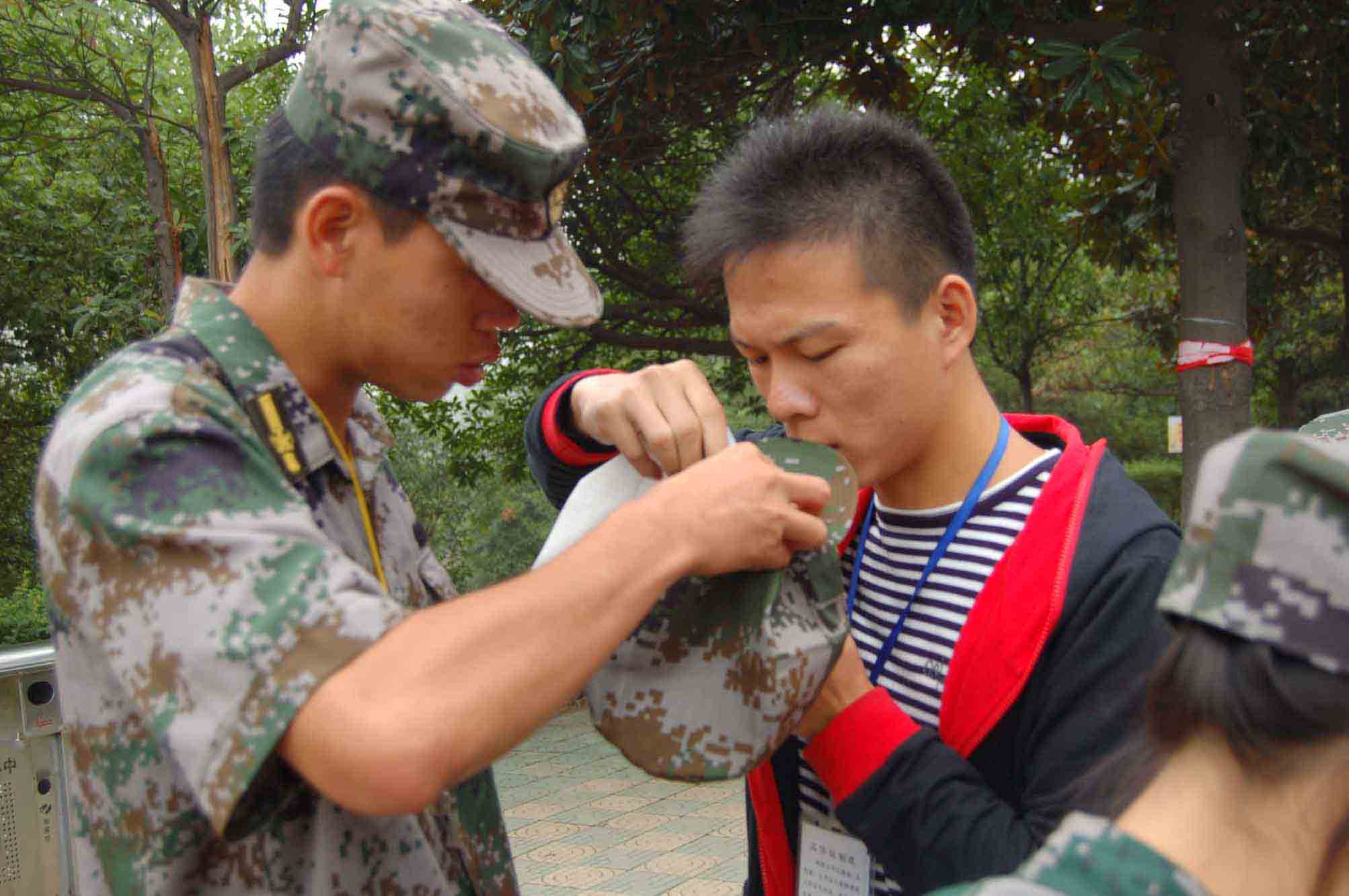 参训学生互相检查手指是否留白、整理彼此的衣领帽徽、屏住呼吸勒紧腰带、鞋带按要求捆绑,更细致到帽后的散发······从早上集合到检查时,学员们无不为这次军容军纪检查评比精心准备着,同时,学生会部分干部更是天一亮就达到军训场地,为学员们安排事项、筹备相关物品和作出相应的检查等。