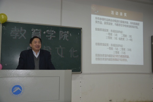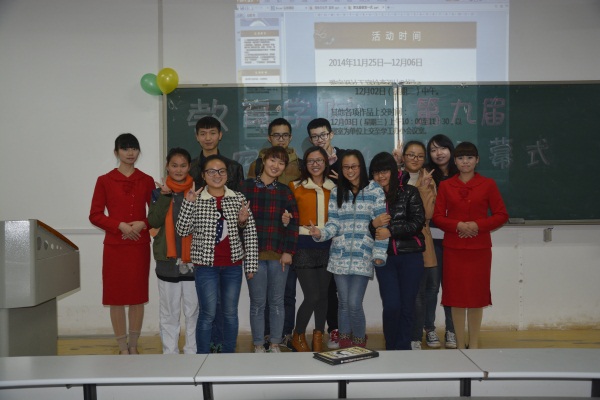 11月26日21:00,我院第九届宿舍文化艺术节开幕式在第八教学楼3-1室举行。我院党委副书记王伟清、学工办主任李涛、学工办老师尹琼芳和滕茜茜、团委学生会主席团成员以及13级、14级学生代表参加了此次开幕式。