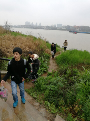 临行前,每个志愿者都准备了一个个大大小小的塑料袋和捡垃圾的工具,行走在公交站台的路途中,即使风呼呼吹过时,大家还是忍不住缩紧脖子,拉紧衣袖,但按耐不住的激动心情也显现了出来。到达目地的后,放眼望去,一个个颜色鲜艳的食品塑料袋静静的躺在绿油油的草丛中对我们咧着嘴笑,果皮和瓶瓶罐罐也在向我们招手,这时怕冷的模样早已丢在一边,不怕脏也不怕乱,撩起衣袖,时而弯腰,时而扶手,时而低头,捡起湘江边一个个被路人丢下的果皮纸屑及塑料袋,。我们不去管垃圾多脏多臭,不去管沿途路人惊奇的目光,不去管天上的雷轰隆隆作响,不去管细雨洒在衣服上的凉意和拂过发丝脸庞的粘稠感。我们执着于手中捡起的一个个垃圾,我们想象着清洁完后湘江旁那自然的风景,当然我们庆幸我们可以来到这里,爱护我们的湘江水,保卫我们的母亲河。
