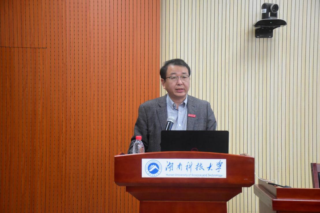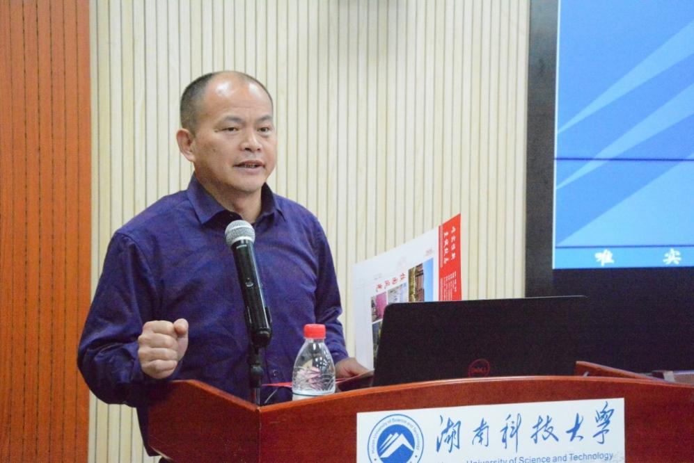 ▲湖南理工学院教育科学学院院长刘理作报告
