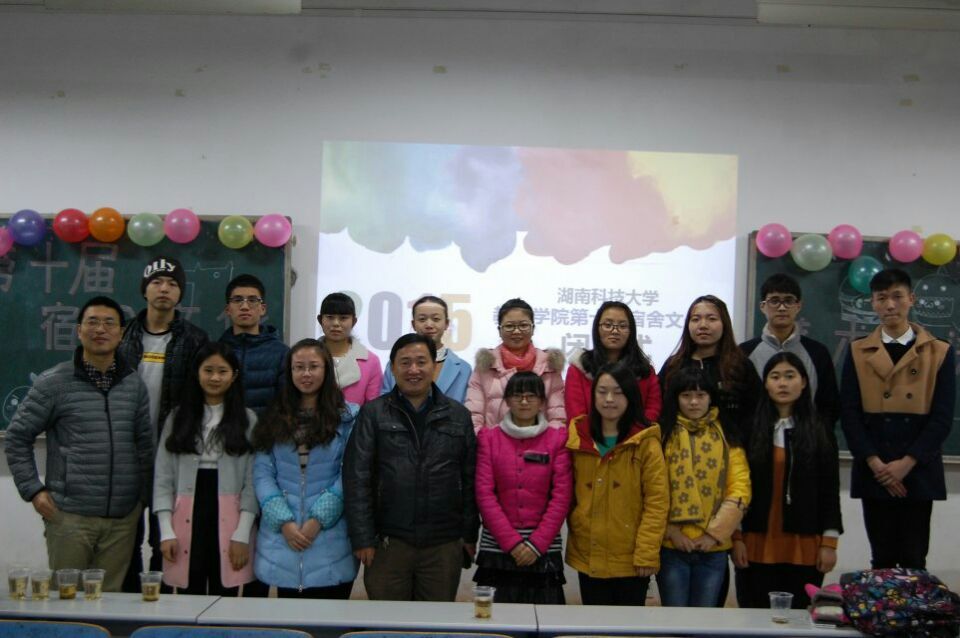 2015年12月16日,这个寒雨初霁,冬阳送暖的日子里,经过一轮异彩纷呈的寝室文化作品评选,由湖南太阳成集团tyc122cc入口纪检宿管部承办的教育学院寝室文化节划上了一个圆满的句号,闭幕式于当天19:00在第八教学楼1--2教室顺利进行。莅临仪式的嘉宾有湖南太阳成集团tyc122cc入口党委副书记王伟清,湖南科技大学心理健康咨询室的尹琼芳老师,教育学院学工办主任李涛老师,及教育学院团委学生会主席团全体成员。