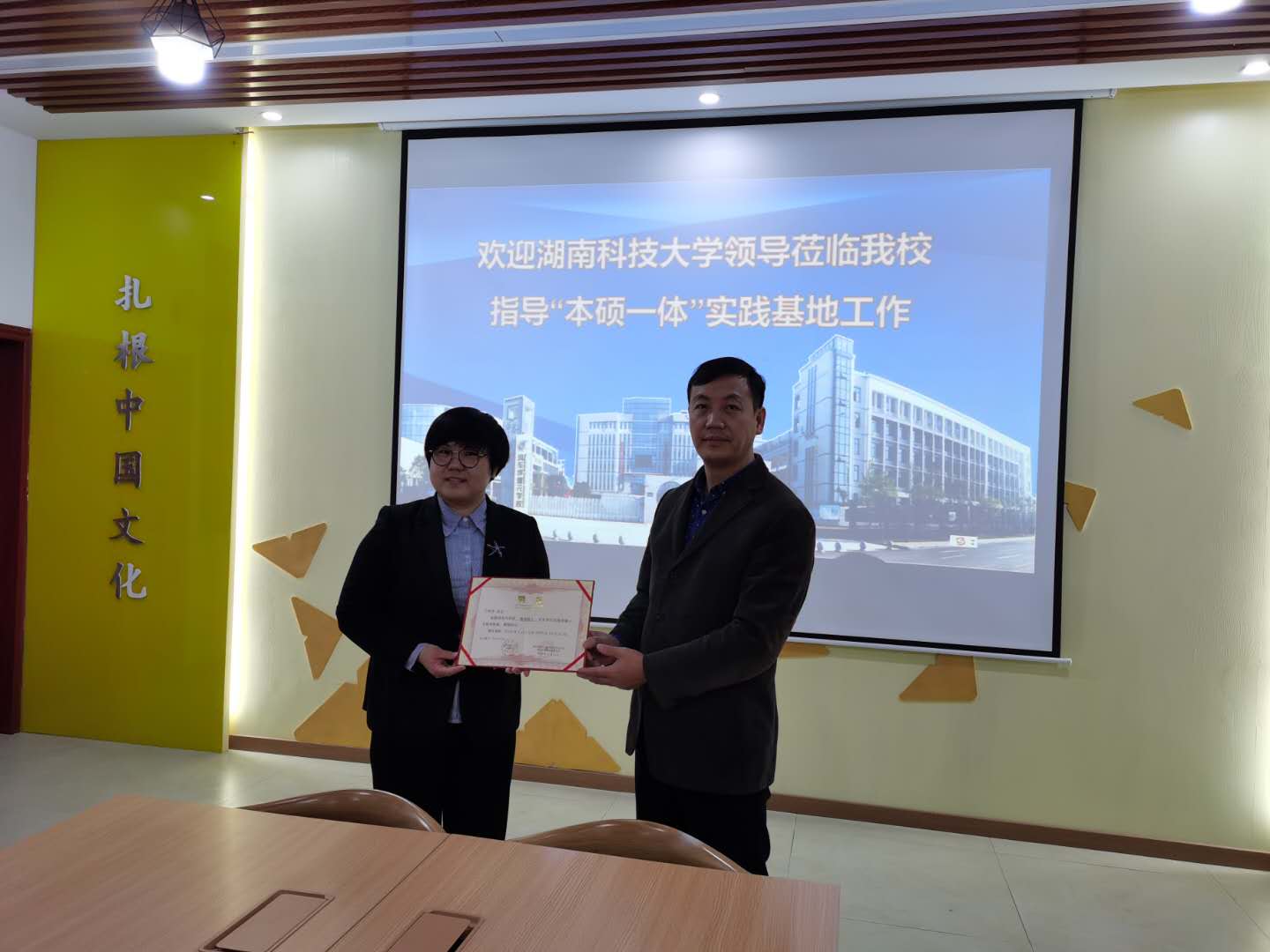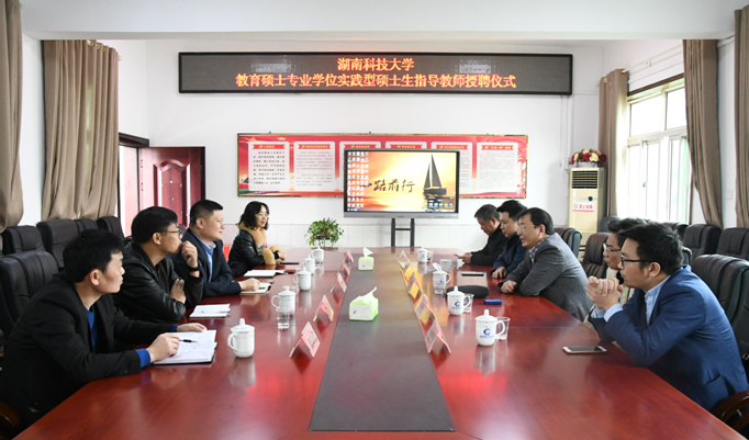 为进一步加强与中小学的交流合作,4月24日,我校教育硕士专业学位研究生培养指导委员会(以下简称校教育硕士“培指委”)主任委员、校纪委书记刘宇文等走访湘潭市第一中学、湘潭市益智中学、湘潭县云龙中学、湘潭市雨湖区风车坪建元学校,并为新聘教育硕士专业学位实践型硕士生指导教师颁发聘书。校教育硕士“培指委”副主任委员、教育学院院长李海萍,校教育硕士“培指委”委员、教育学院党委书记李炳煌等参与走访。