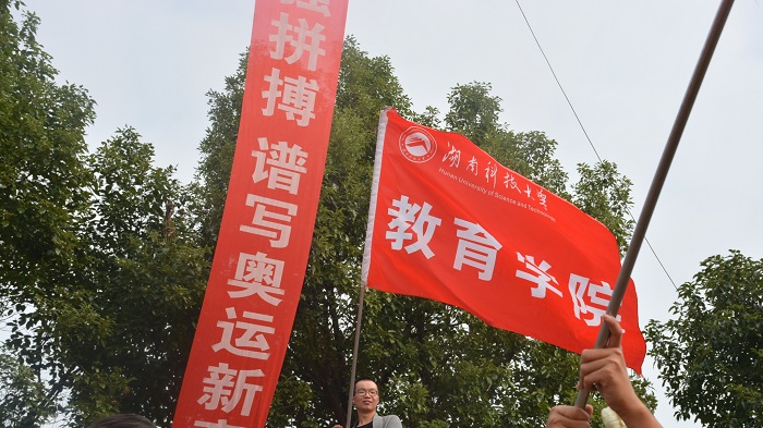 伴随着入场式的结束,运动场上进行了庄严的升旗仪式,国歌奏响,全校师生注视着国旗缓缓升起,一种使命感责任感油然而生。接着,湖南科技大学校长李伯超对大会致辞,他用慷慨激昂的语言充分阐释了运动精神和表达我校对运动建设的重视并预祝大会圆满成功。然后,运动员代表崔皓代表全体运动员宣誓,表达了尊敬对手、尊重观众、服从裁判、勇于拼搏、赛出水平的决心与信心,以及裁判员代表宣誓,表示裁判员将严格执行竞技章程和规则,团结协作、公平公正。
