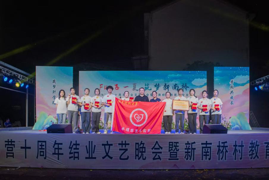 九年坚守,情暖乡野。7月26日,在浏阳市新南桥村“FUN”学营十周年文艺晚会上,湖南科技大学木槿感恩支教团的师生们与当地孩子同台献艺。欢声笑语间,流淌着九年时光沉淀的深厚情谊。这支队伍,已从“外来客”成为孩子们心中最亲切的“自家人”。