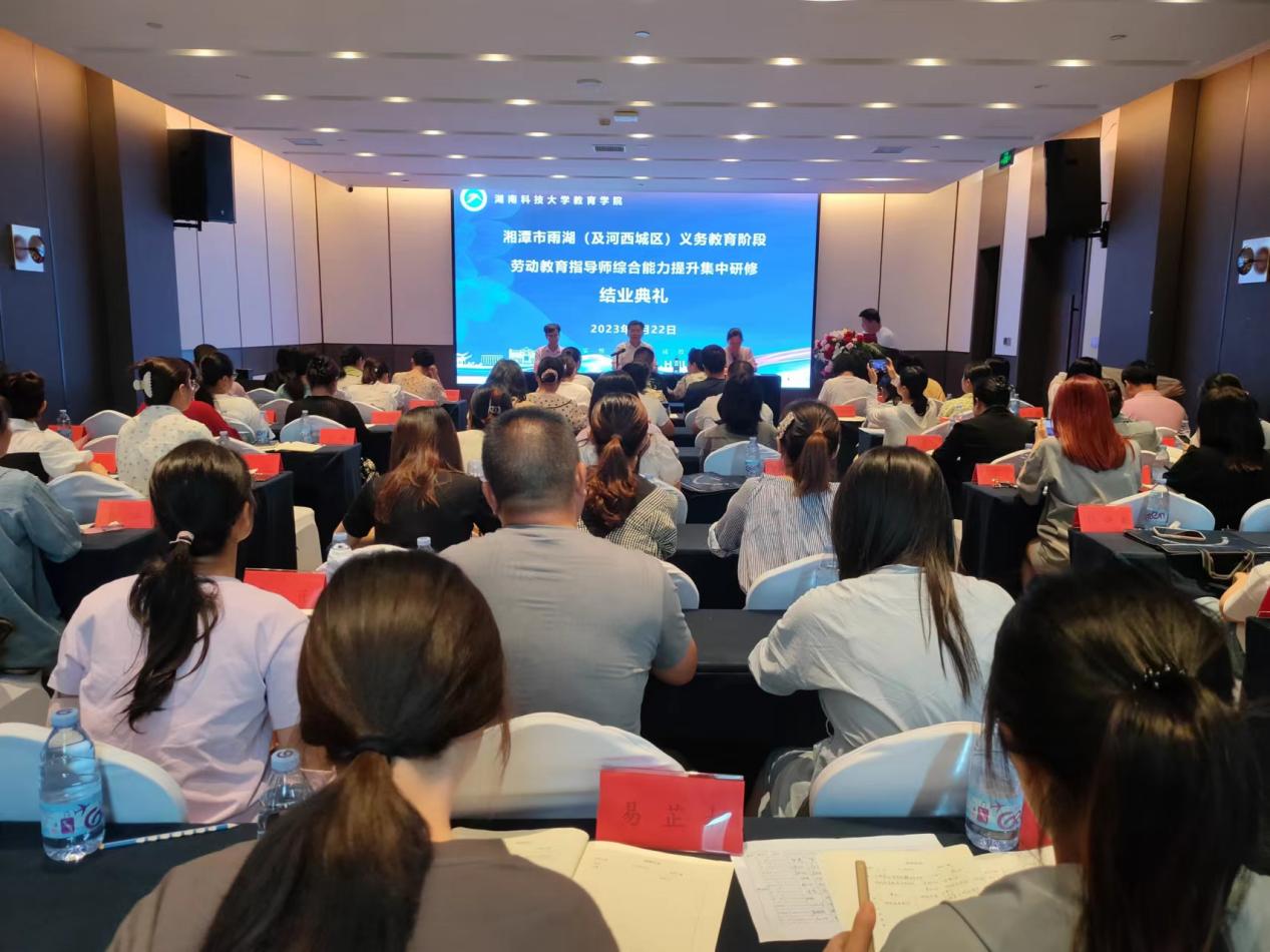 为深入贯彻落实党的二十大精神,落实落实立德树人根本任务,加强义务教育阶段教师队伍建设,促进基础教育高质量发展,湖南科技大学承办的湘潭市雨湖(及河西城区)义务教育阶段劳动教育指导师综合能力提升集中研修活动7月19日在湘潭市华美达广场酒店开班,为期4天,于7月22日结束,来自湘潭市雨湖(及河西城区)的70名教师通过专题报告、交流分享等形式圆满地完成了研修学习任务。雨湖区教研培训中心尹荣主任,湖南太阳成集团tyc122cc入口党委书记李炳煌教授出席结业仪式。李炳煌教授主持会议。