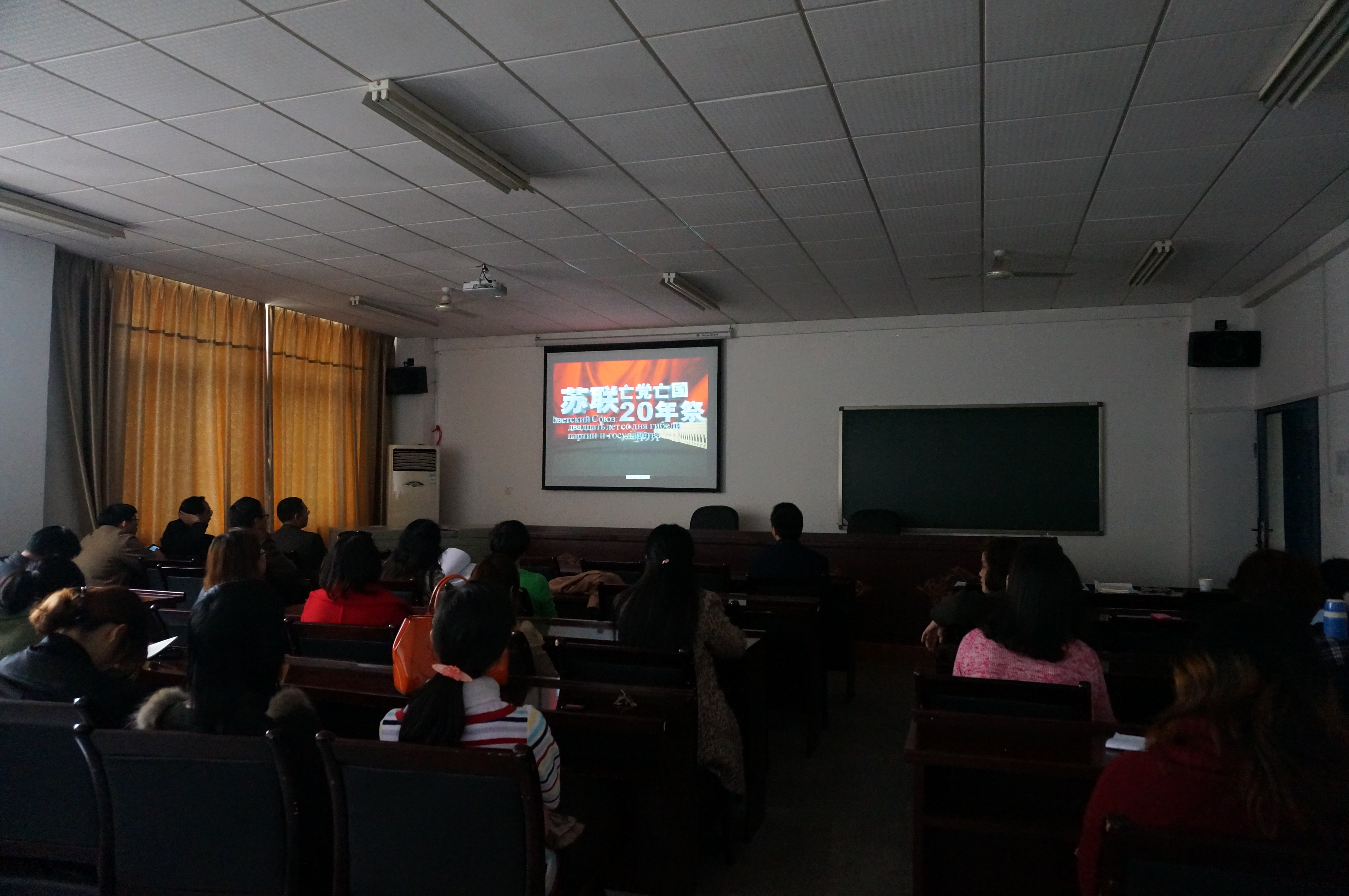 3月25日下午,教育学院组织全院教职工在第八教学楼408室观看《苏联亡党亡国20周年祭:俄罗斯人在诉说》、《周恩来的四个昼夜》等电影电视专题片。