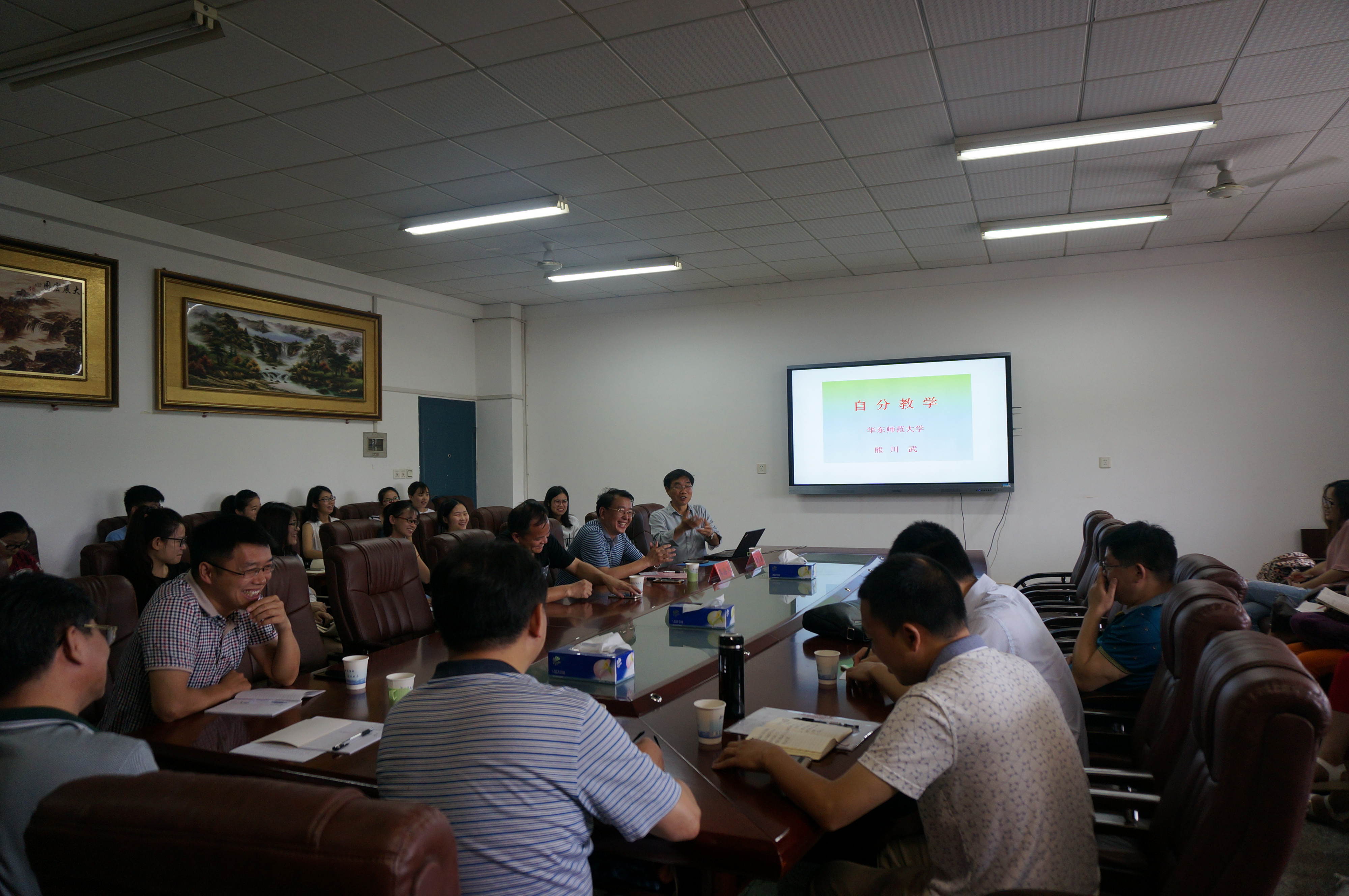 随后,熊川武以视频《心太贪》描述了当前“满堂灌”教学的场景和问题,由此引出自分教学,并强调自分教学的“问题导向”,以改变传统教学中“满堂灌”和“因材施教”的不足,着重介绍了自分教学的基本原则,以课堂实例视频充分展示了自分教学的具体环节和实施步骤。