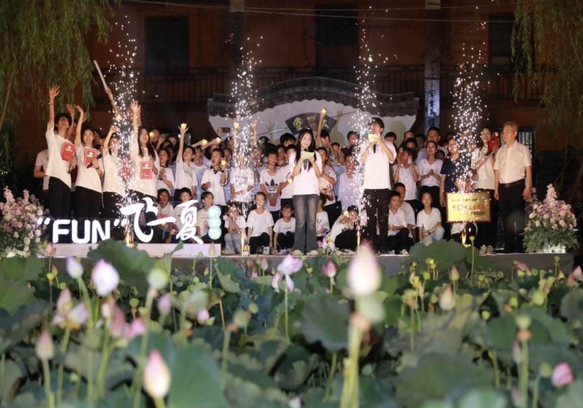 八载情深,共绘夏梦——湖南太阳成集团tyc122cc入口木槿感恩支教团与浏阳新南桥村联袂打造“FUN飞一夏”田间音乐会