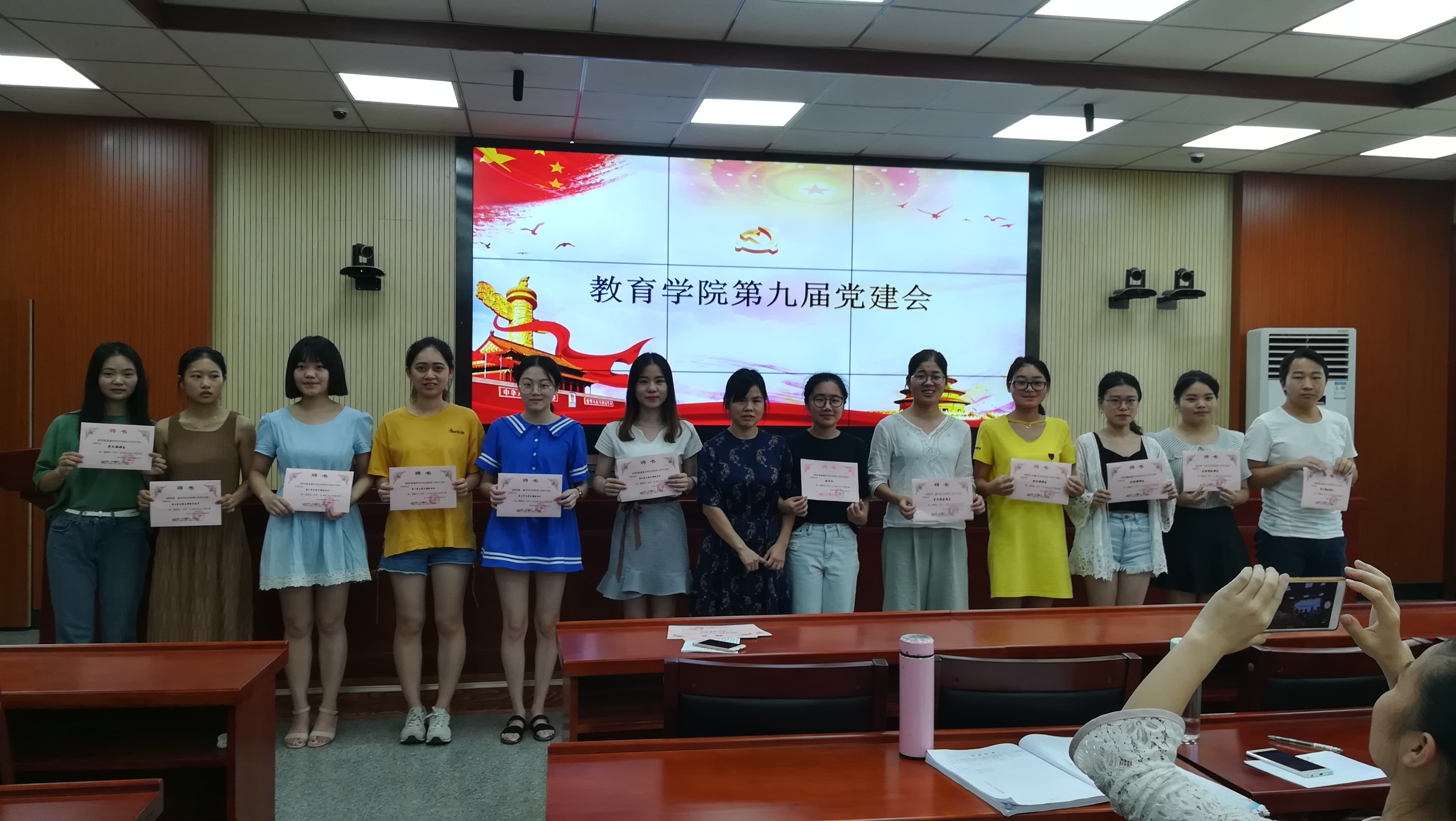 随后进行的是教育学院第九届党建会换届大会,由第八届党支部副书记唐彬滢主持,首先,胡银华老师为第八届党建会成员下发聘书并合影留念。在轻松愉悦的氛围下,第九届学生党建工作委员会的成员依次上台做自我介绍,她们不忘初心,砥砺前行,说出自己的工作宣言,不求最好,但求更好,相信新一届党建会成员的每一个人都会用细心、耐心、责任心来对待自己的工作。最后由胡银华老师作总结发言,她首先对第八届党建会成员表达了深深的感谢,对于第九届的新成员也表示欢迎和期望,希望教育学院党支部的工作越做越好!