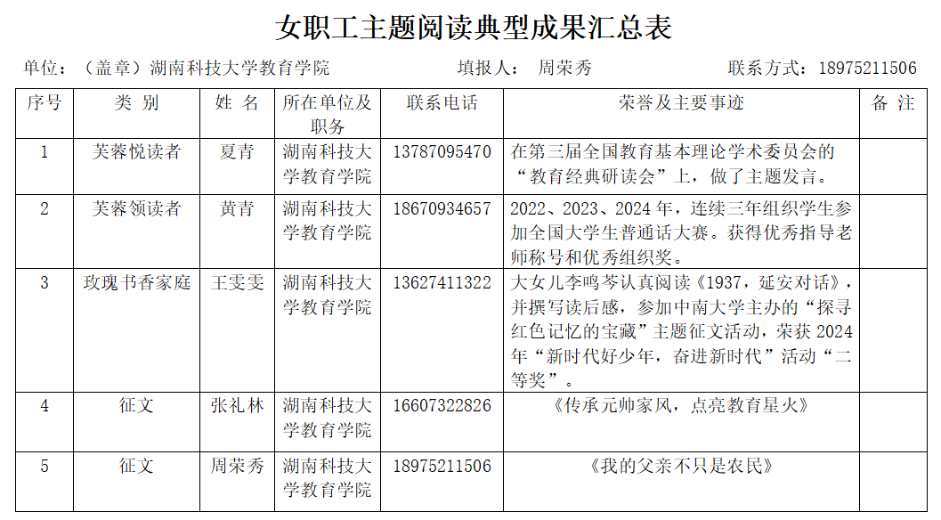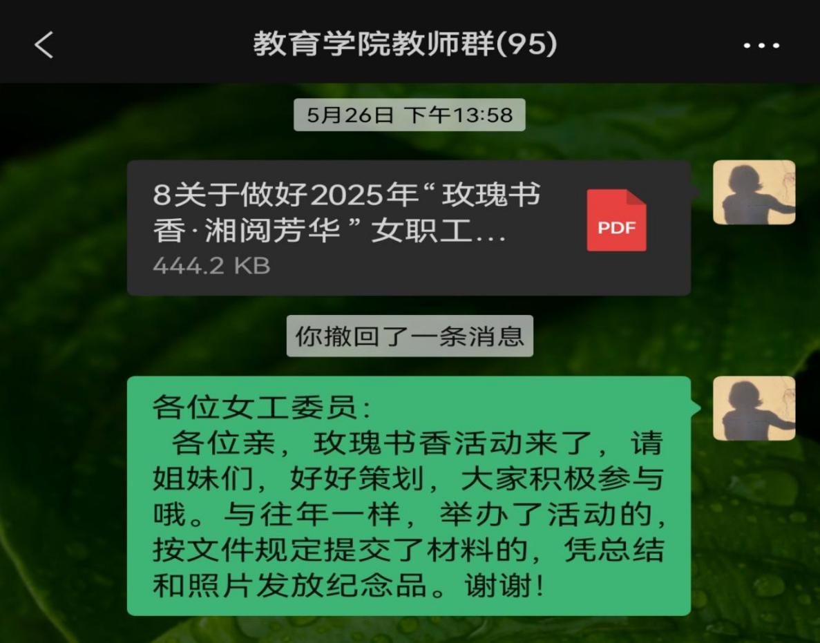 为积极响应校分工会发起的“玫瑰书香·湘阅芳华”女职工主题阅读活动号召,教育学院分工会充分发挥主观能动性,精心筹备、有序组织,引领全院女职工以多元形式投身阅读活动,在书香中滋养心灵、收获成长。