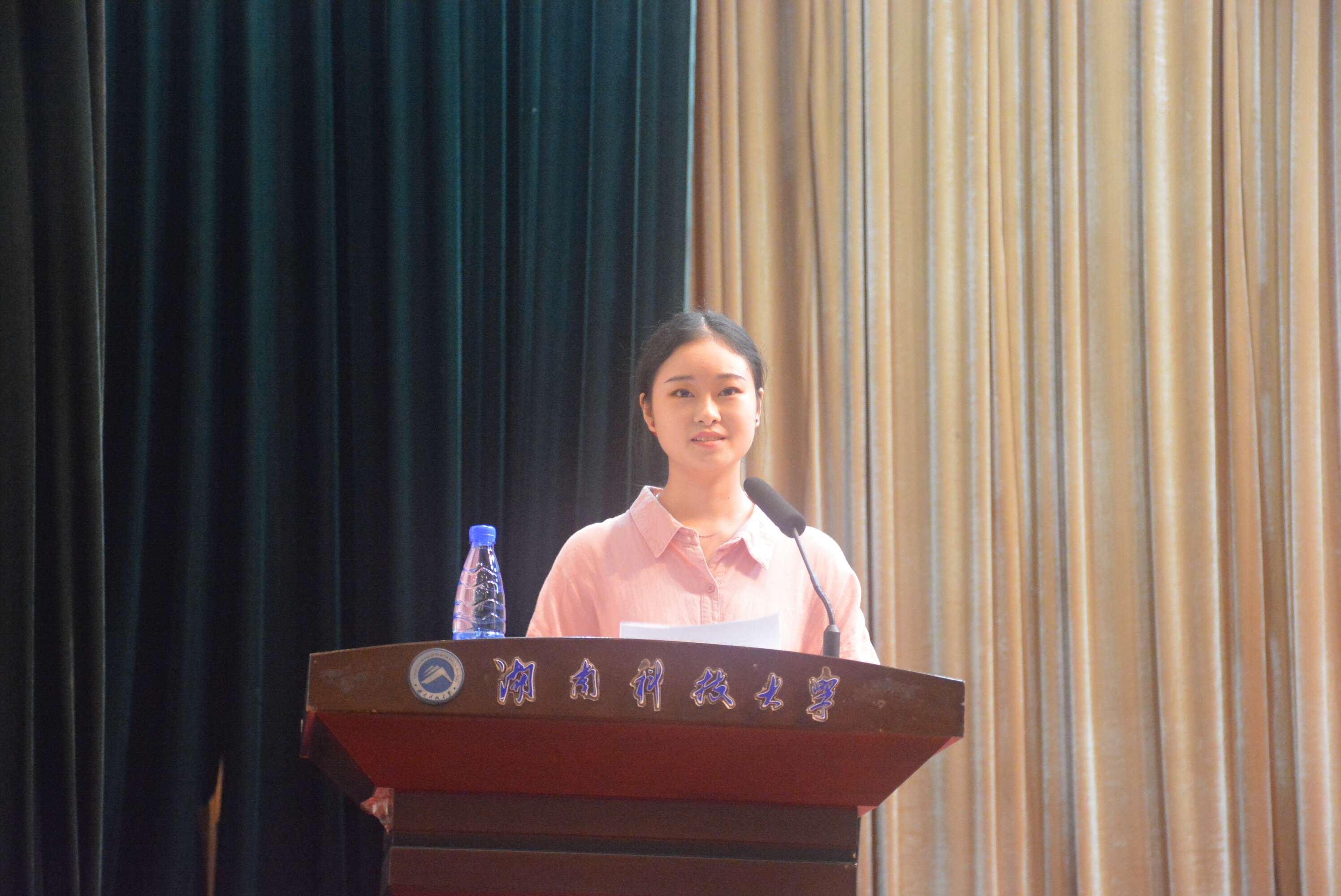 新老生代表发言环节中,本科生代表15级贾梦以自身为例阐明了 “年轻允许失败,尝试就是胜利”的内涵,强调积极参与实践的重要性,告诫新生们进入大学更应该努力学习专业知识,全面提升自己,面向未来,做有思想、有担当的教育人。