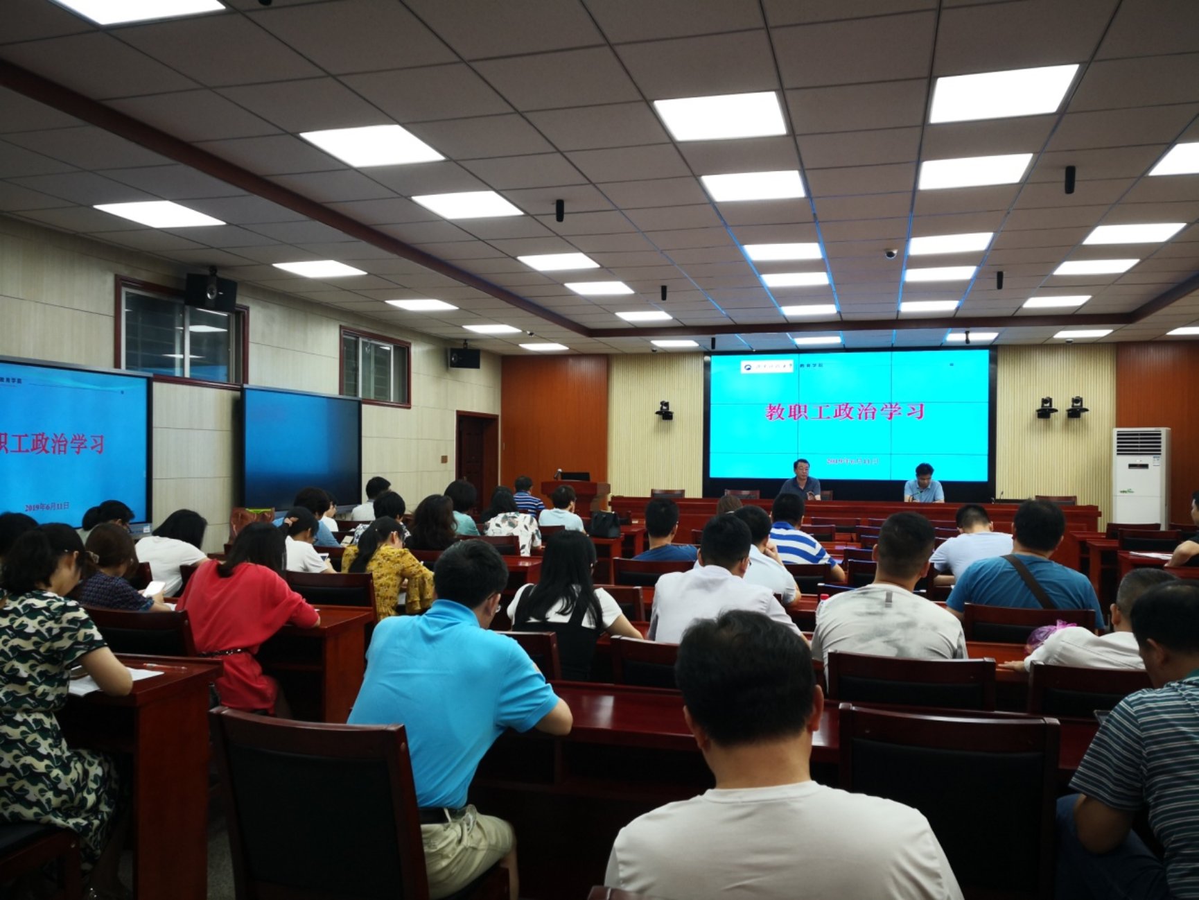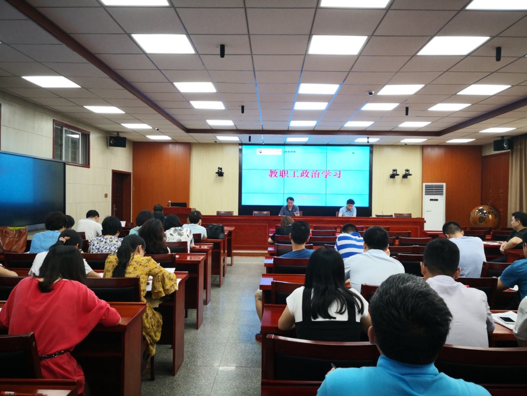 2019年6月11日下午,教育学院组织全体教职工在第八教学楼308会议室学习《中华人民共和国宪法修正案(草案)》(摘要)、习近平总书记关于统一战线思想重要论述以及“加强意识形态工作”学习。会议由院党委书记李炳煌主持。