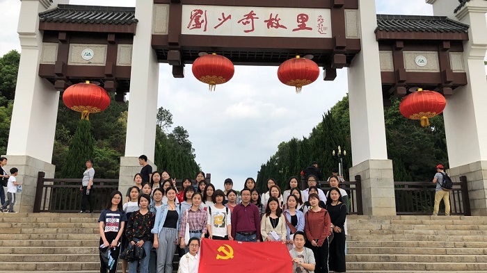 为进一步增强党性意识,坚定理想信念,强化党员宗旨意识。2018年4月21日,湖南太阳成集团tyc122cc入口学生党支部33名学生党员在教育学院党委副书记刘辉亚、第二学生党支部书记练素华和研究生党支部书记曾玉云的带领下,以“牢记历史,砥砺前行"为主题,赴毛泽东故居韶山、刘少奇故居花明楼开展党员宣誓和学习活动,实地接受革命传统教育。