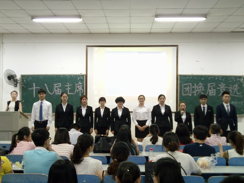 2016年6月7日19点30分,湖南太阳成集团tyc122cc入口第十八届主席团换届竞选在第八教学楼2-3教室如期进行。出席现场的嘉宾有教育学院党委副书记王伟清教授,教育学院学工办主任李涛,学工办老师练素华、胡银华、尹琼芳、腾茜茜,及教育学院第十七届主席团成员。