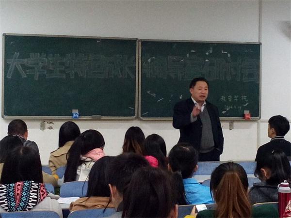 2014年11月19日19:30,湖南科技大学大学生特色成长辅导室师生研讨会于八教3-4顺利开展。教育学院党委副书记王伟清、学工办主任李涛老师、辅导员老师胡银华、练素华、学生会主席团成员及学生会各部门、各班代表参与此次研讨会。